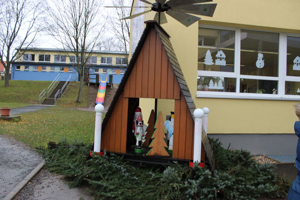 Gemeinsam mit unserer Grundschule feiern wir das traditionelle Pyramideanschieben.