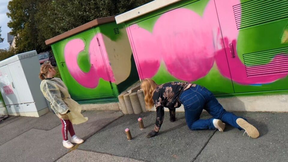 Lichtensteiner Kinder sprühen graue Wände bunt