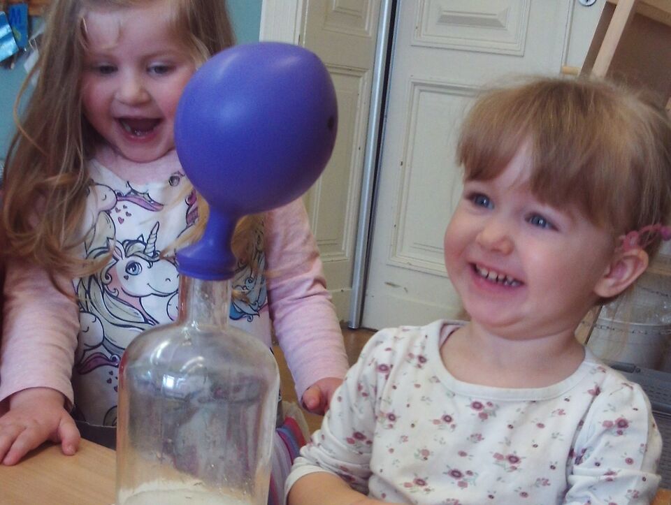 Die "Sternschnuppen" im Kinderhaus "Sterntaler" experimentieren mit großer Begeisterung.