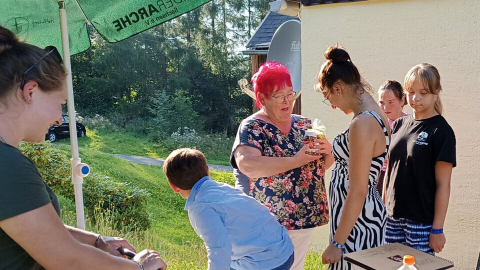 Im Hof der Wohngruppe „Katschwitzer Hof“ ging es am Dienstag-Nachmittag wie in einem Bienenschwarm zu.
