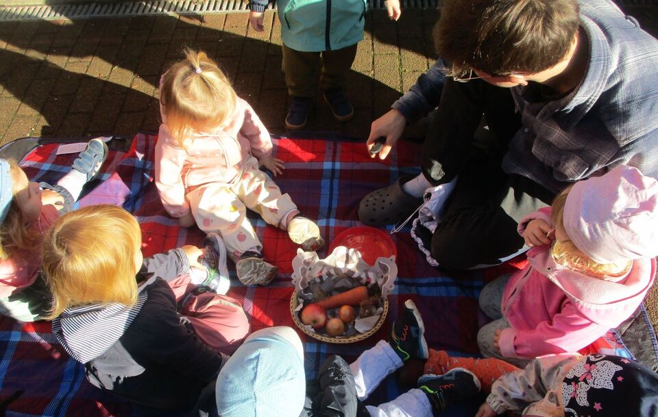 Krippenkinder der Kinderoase begrüßen den Herbst mit all seinen Farben