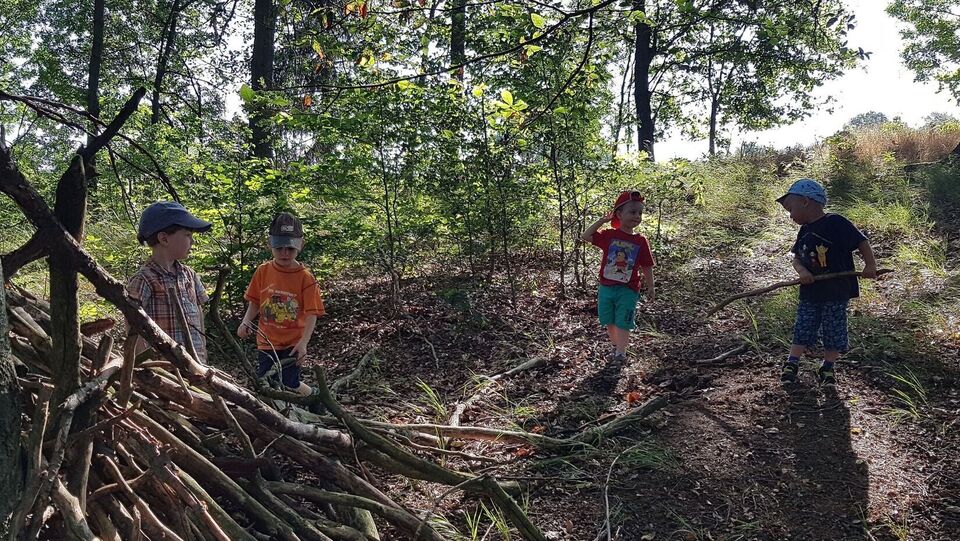 Trommeln im Naturhort und Hüttenbau in der Kita Mulda