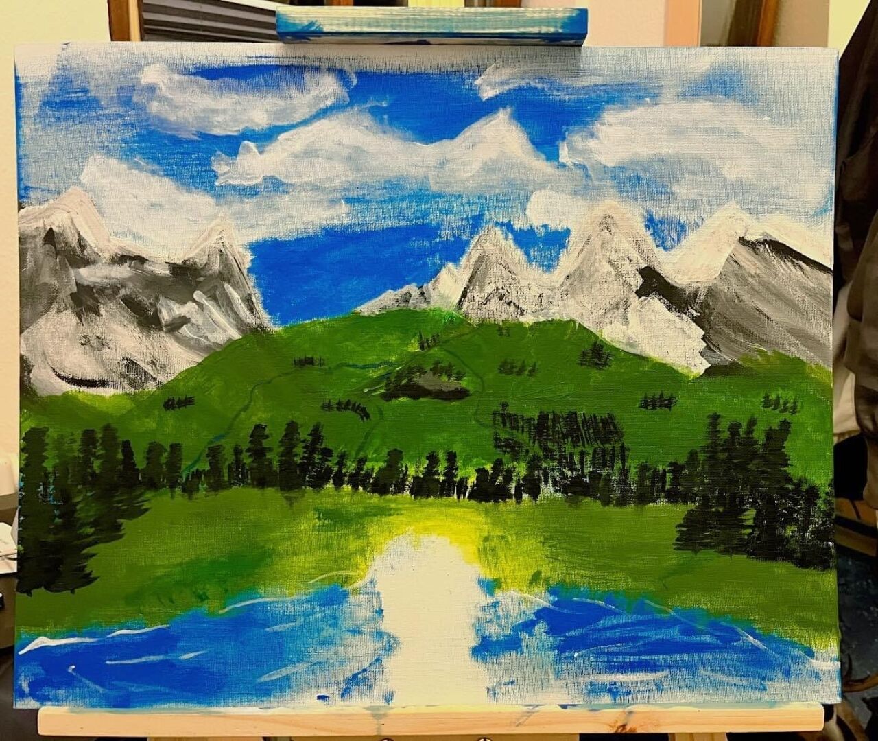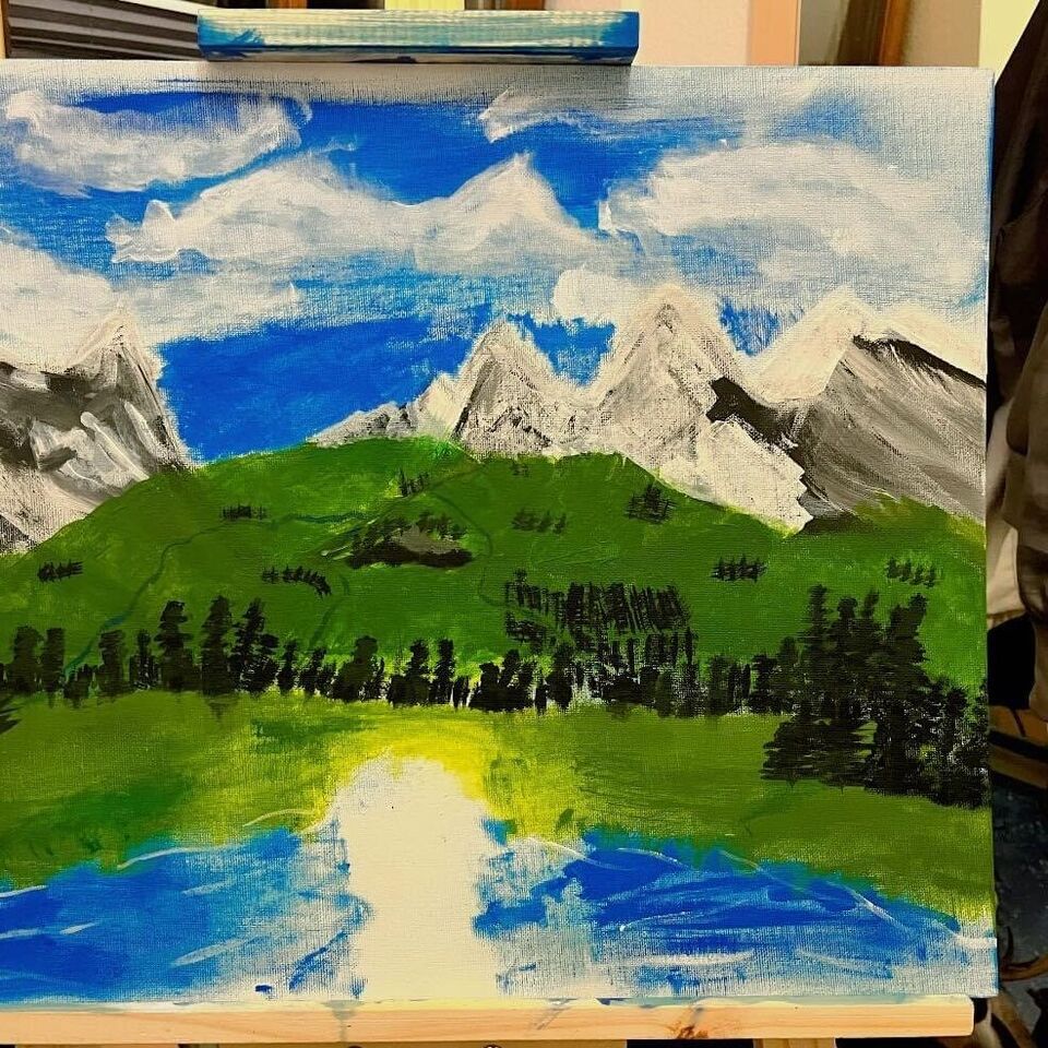Sein erstes Werk stellt für viele sicher eine Herausforderung dar, doch Ben nahm diese mit Leichtigkeit an. Er schuf eine beeindruckende Landschaftsszene mit majestätischen Bergen, sanften Hügeln, blühenden Wiesen, kleinen Wäldern und glitzernden Gewässern. Seine künstlerischen Fähigkeiten beeindruckten die pädagogischen Fachkräfte der Einrichtung, die in Ben eine kreative Seite entdeckten, die ihnen zuvor unbekannt war.