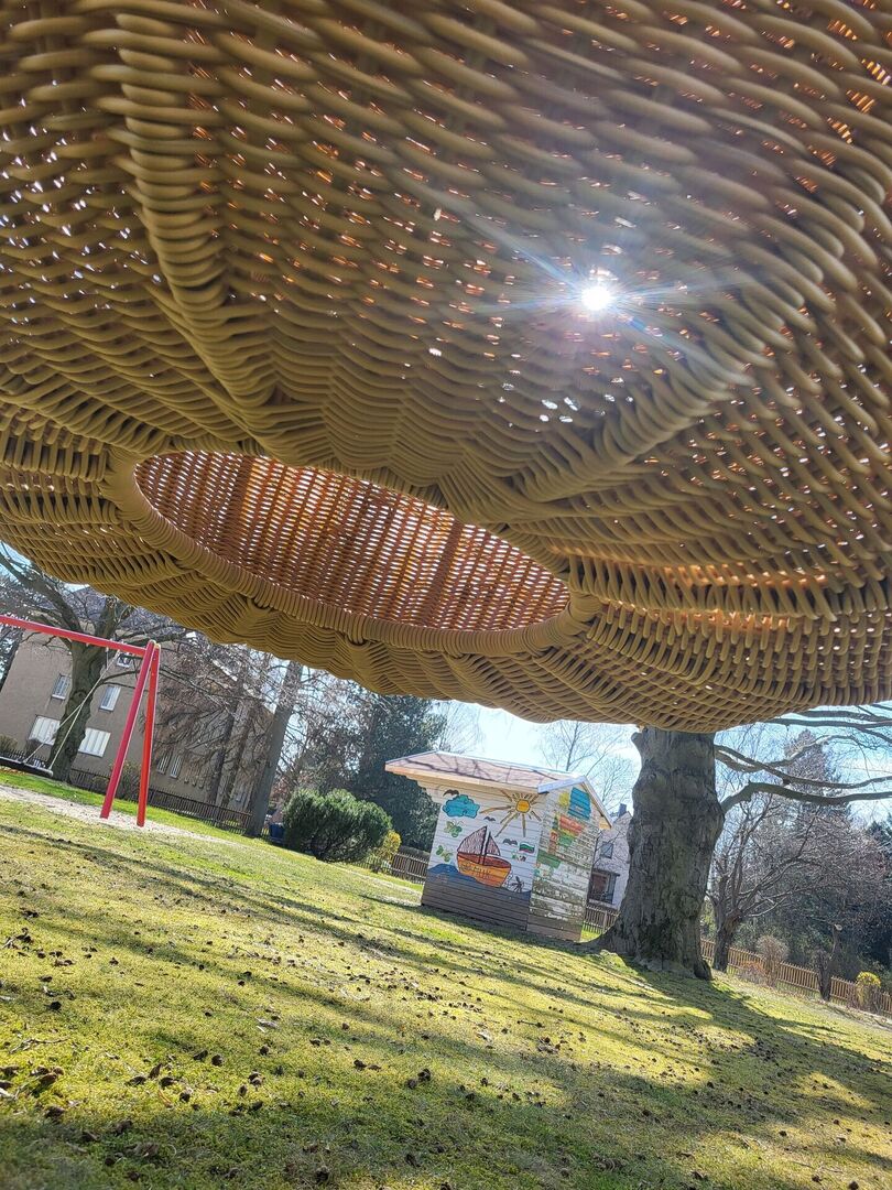 Auch die kleinsten Bewegungen wirken in der Schaukel beruhigend auf Körper und Seele. Kinder lieben das sanfte Schaukeln und können im Schutz des Korbes die Außenwelt beobachten, ohne selbst gesehen zu werden. Der Korb wirkt wie ein „Herzstück“ im Garten, fördert das soziale Miteinander in der Gruppe und unterstützt die heilpädagogische Ausrichtung der Einrichtung.