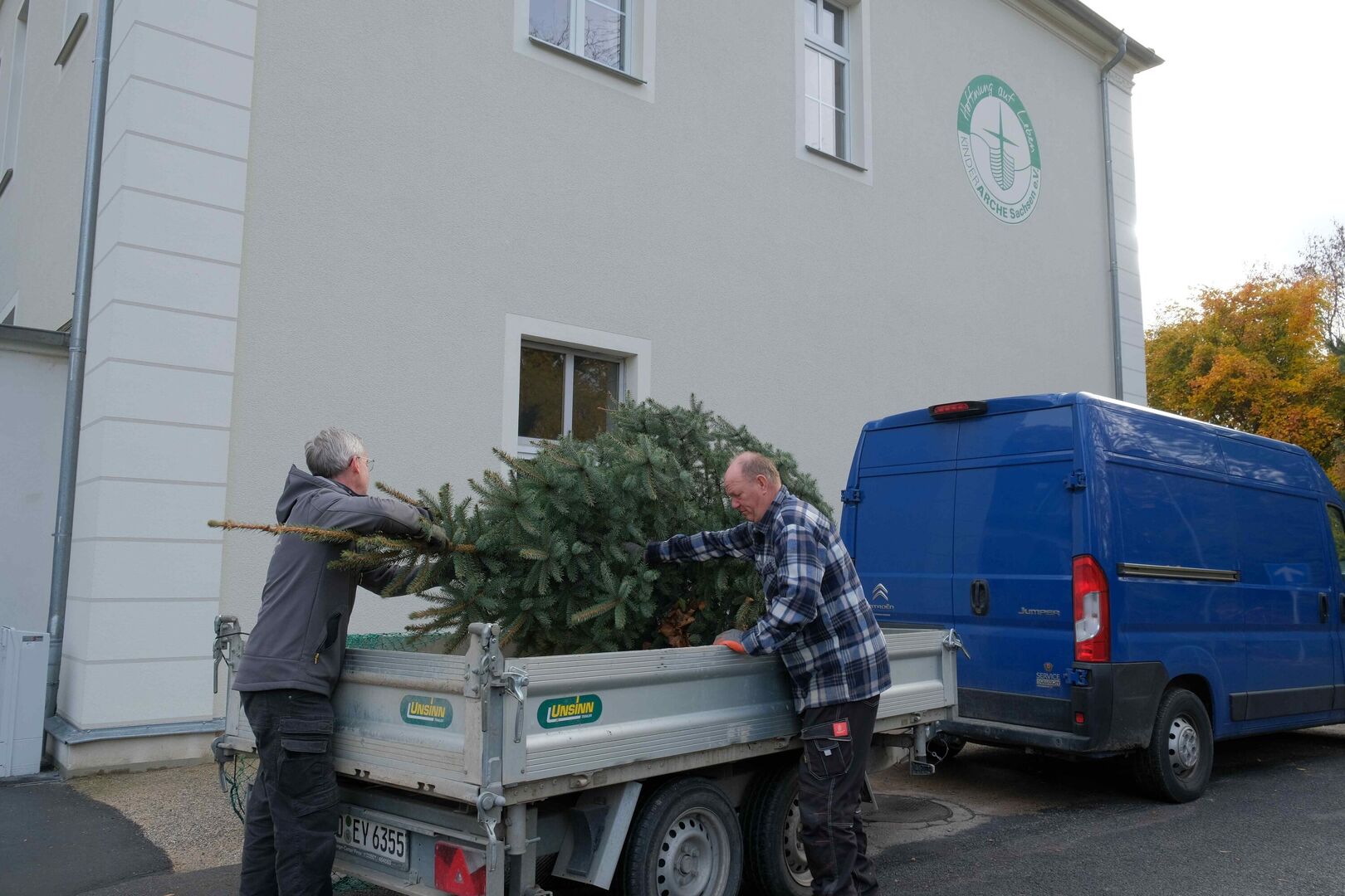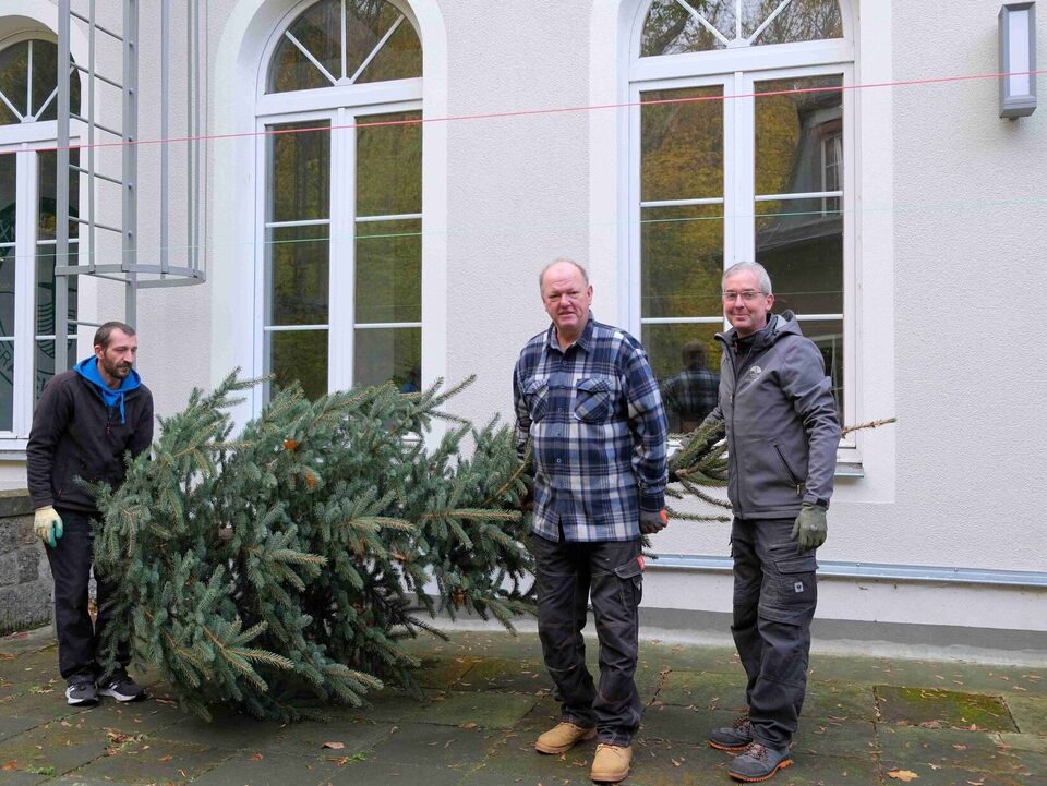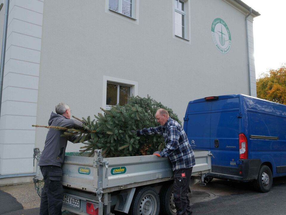 Zehn Jahre später ist der gerettete Baum über vier Meter hoch gewachsen und wurde zu groß für die Gartensparte. Also beschloss Bernd Walther, die Tanne der Kinderarche Sachsen zu schenken. Mit einem Kumpel sägte er sie ab und brachte sie auf einem Anhänger in die Geschäftsstelle nach Radebeul.