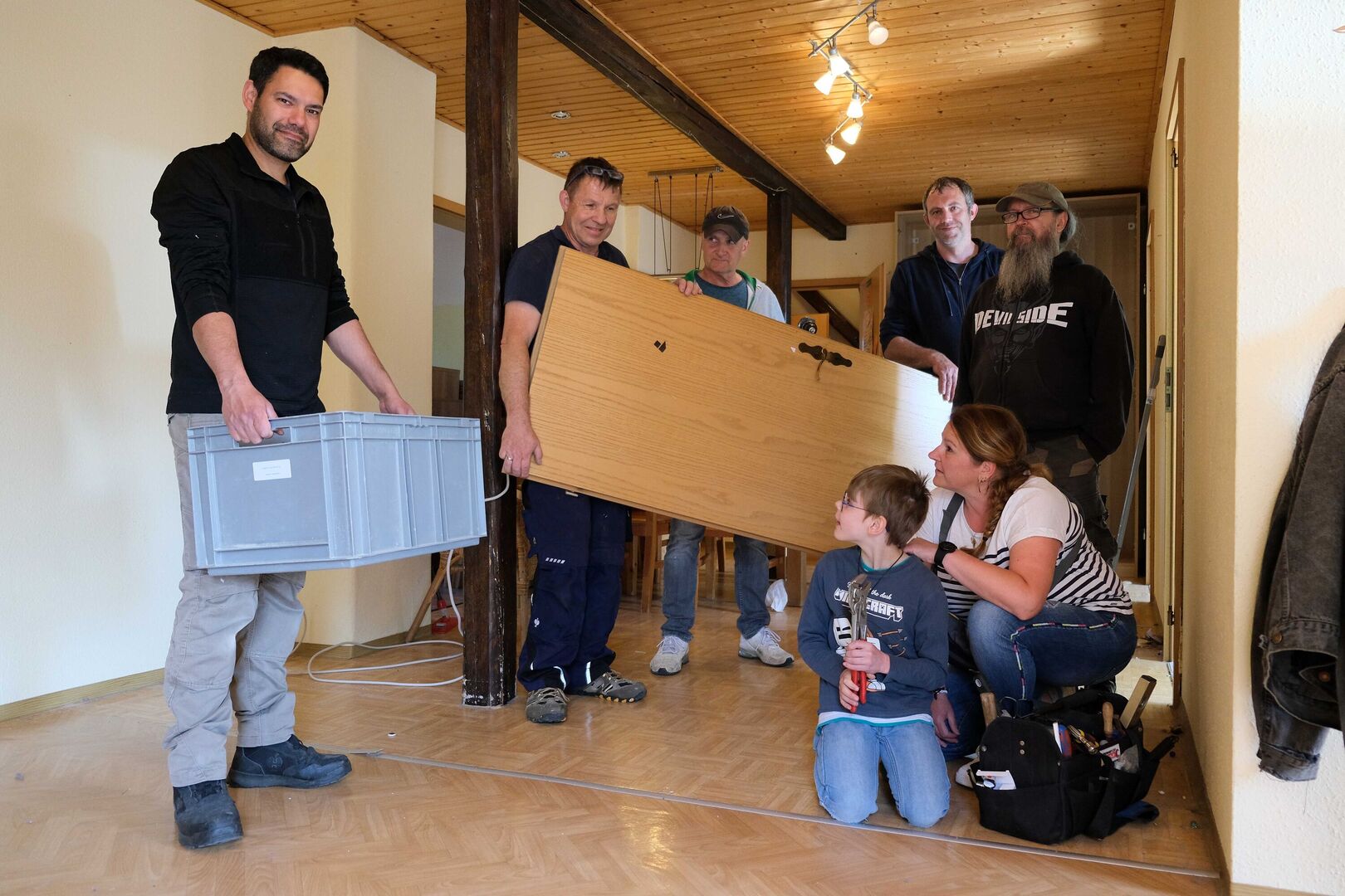 Beim Umzug packten die Erzieherinnen und Hausmeister aus dem Kinder- und Jugendheim Crimmitschau, aber auch fünf Kollegen aus anderen Kinderarche-Einrichtungen tatkräftig mit an.