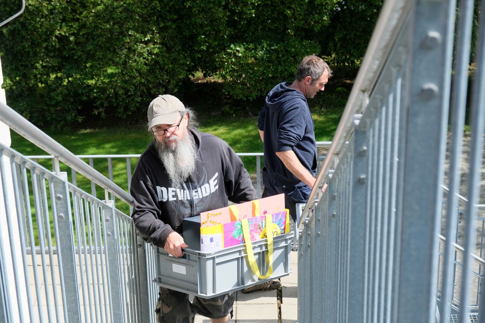 Für den Umzug wurden die zwei Crimmitschauer Hausmeister von ihren Kinderarche-Kollegen aus Radebeul, Leubnitz, Burgstädt und der „Kinderoase“ unterstützt. Von 8 bis 13 Uhr schleppten sie zahlreiche Kisten, eine Waschmaschine, einen Kühlschrank und Möbel die Treppenstufen herunter und wieder herauf, bis der Schrittzähler von Hausmeister Maik Sowada am Ende stolze 16.000 Schritte zeigte!