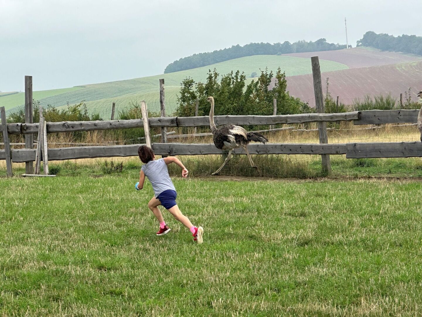 Auf dem Straußenhof Ochsenkopp konnten unsere Kinder auf Tuchfühlung mit den riesigen Vögeln gehen.