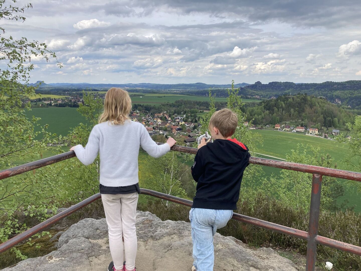 Weil es an diesem Tag regnete, entschied sich der kleine Waschbär, am Nachmittag mit der Hälfte der Kinder mit der nostalgischen Kirnitzschtalbahn zum Lichtenhainer Wasserfall zu fahren. Auch eine Fahrt mit dem uralten Personenaufzug in Bad Schandau, hoch über der Elbe, war ein Erlebnis. Die zu Hause Gebliebenen spielten den ganzen Nachmittag das Kartenspiel „Skyjo“ und selbst am Abend wollten alle größeren noch weiterspielen.