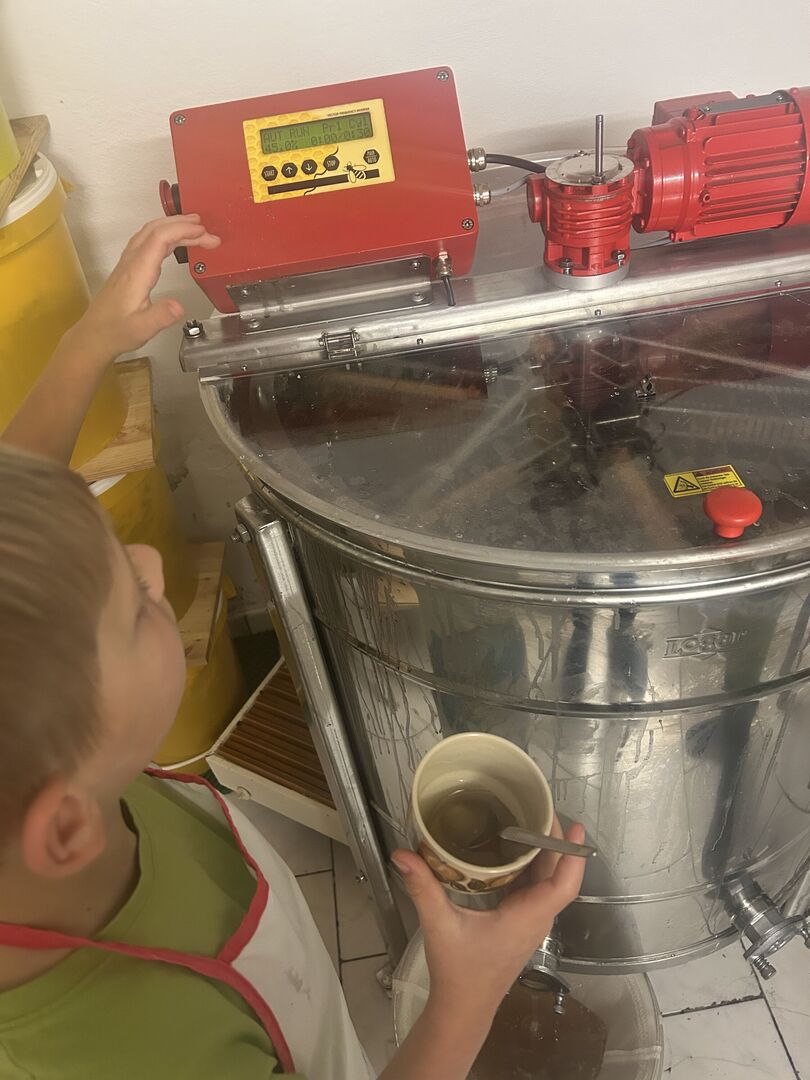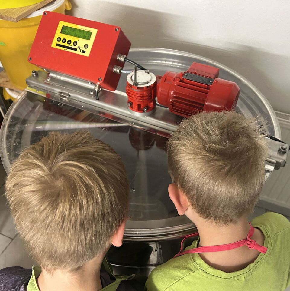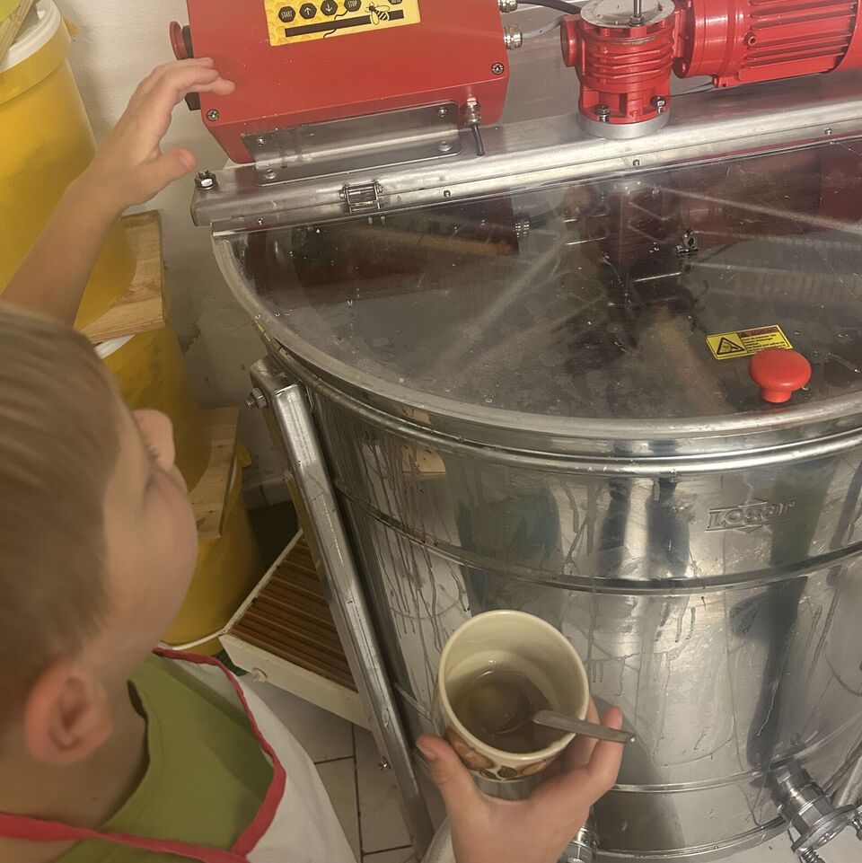 Die Kinder unserer Wohngruppe Niederbobritzsch haben heute eine neue Erfahrung gesammelt: Zum ersten Mal in ihrem Leben haben sie Honig geschleudert! Dazu haben wir am Nachmittag die Imker-Familie Schmieder (die Eltern unseres Hausmeisters Tobias) besucht. Die Kinder staunten, was es dort alles zu entdecken gab, und stellten viele Fragen.