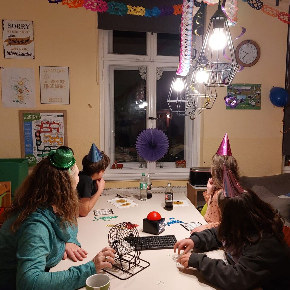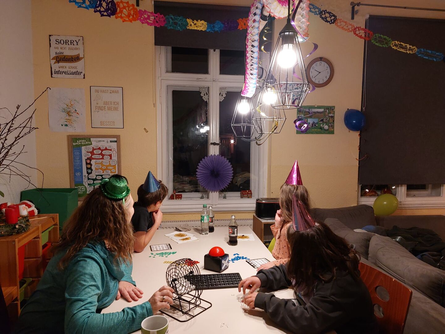 Doch wer glaubte, dass die Kinder danach müde ins Bett fallen und am Ende noch den Jahreswechsel verschlafen würden, hat sich getäuscht. Nach einem ebenso ausgiebigen wie leckeren Raclette-Abendbrot waren die Energie-Reserven wieder aufgefüllt und die jungen Menschen bereit für weitere Aktivitäten. Nach einer Runde Bingo sowie dem Spiel Magic Moments eröffnete unser diesjähriger DJ Leon das Tanzfeld. Mit flotter Musik, blinkenden Lichtern, reichlich Deko und viel Bewegung im Körper schwangen alle noch einmal das Tanzbein und powerten sich ordentlich aus.