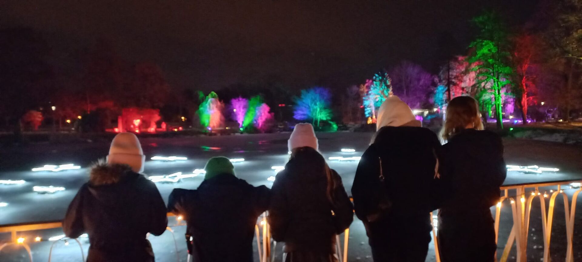 Die Kinder und Erzieher der Wohngruppe 2 von der Hauptstraße in Markkleeberg haben den Rundgang im Lichtergarten sehr genossen. Die Augen der Kinder haben mindestens genauso geglitzert wie die installierten Lichter. Begeistert waren sie von dem begehbaren Lichtervorhang, den Sternen im Wasser und den Projektionen im Springbrunnen. Die Lichterspiralen, die mit akustisch passender Musik unterlegt waren, luden zum minutenlangen Verweilen ein.