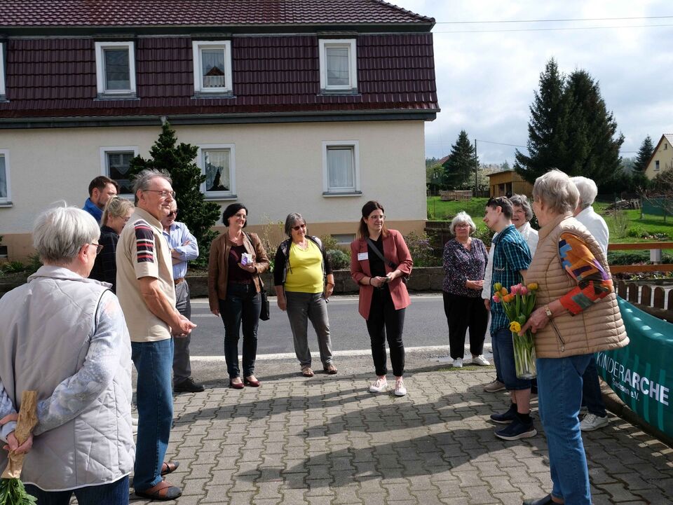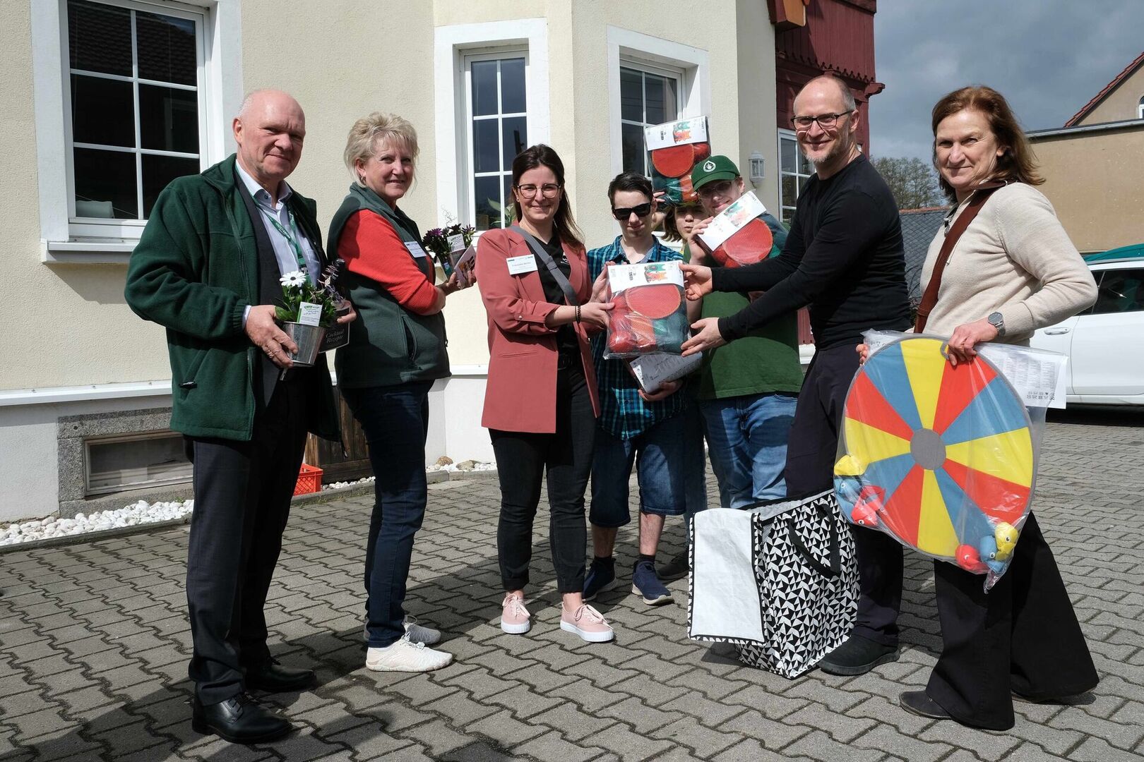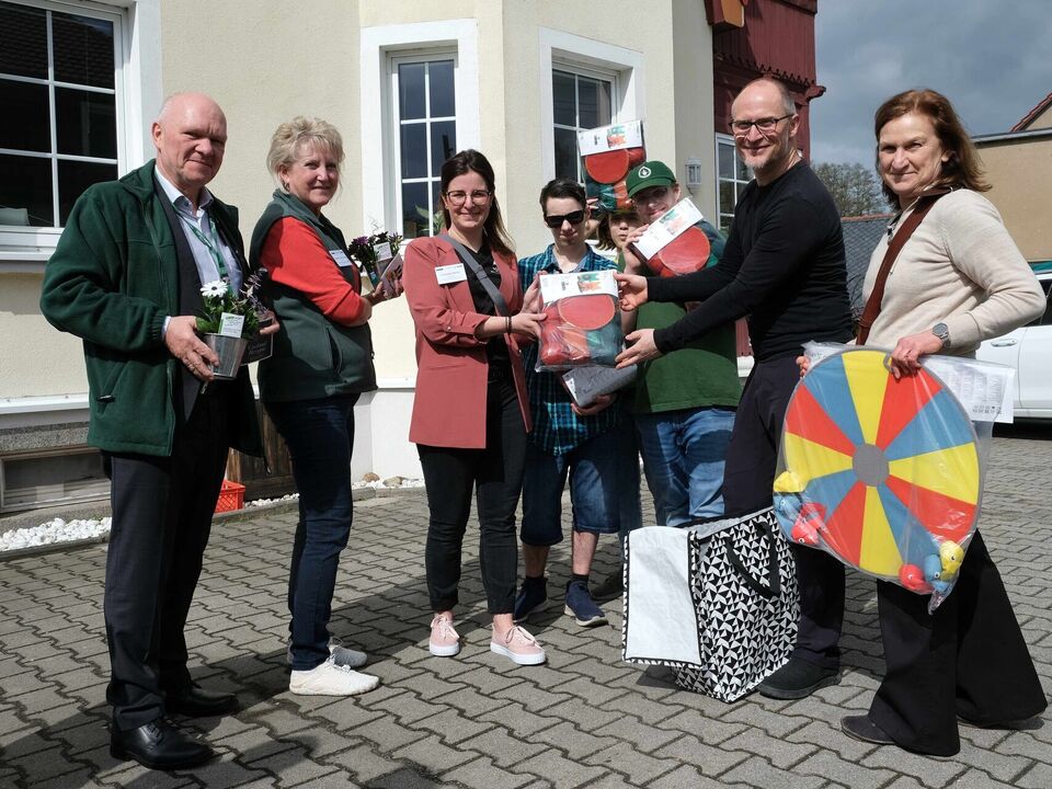 Für die weitere Ausgestaltung des Hauses sorgten dann die Gäste mit ihren Geschenken: So brachte der Bürgermeister Achim Wünsche eine schöne Grünpflanze mit, viele Nachbarn kamen mit Blumen, der Sportverein überbrachte einen Gutschein für zwei Stunden Kegeln, und das Büro architektur4, das den Umbau des Hauses fachlich begleitet hat, hatte zahlreiche Spiele für den Außenbereich mit im Gepäck.