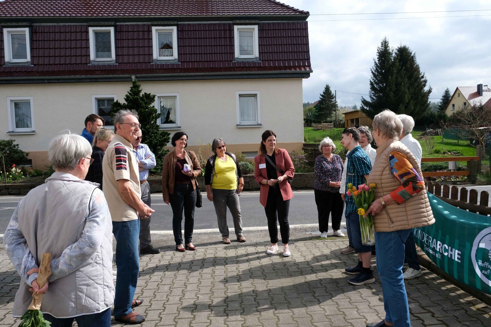 Knapp sechs Wochen nach ihrem Einzug haben die Kinder und das Team unserer neuen Wohngruppe „Am Tröbigauer Berg“ am Mittwoch zu einem Tag der offenen Tür eingeladen. Der Strom interessierter Nachbarn, Spender und Unterstützer, Gemeindevertreter, Handwerker, Jugendamts-Mitarbeitenden und Kinderarche-Kollegen aus anderen Einrichtungen riss gar nicht ab – immer wieder begrüßte Einrichtungsleiterin Franziska Bönke neue Gäste vor dem Haus, nahm Blumen und kleine Geschenke entgegen.