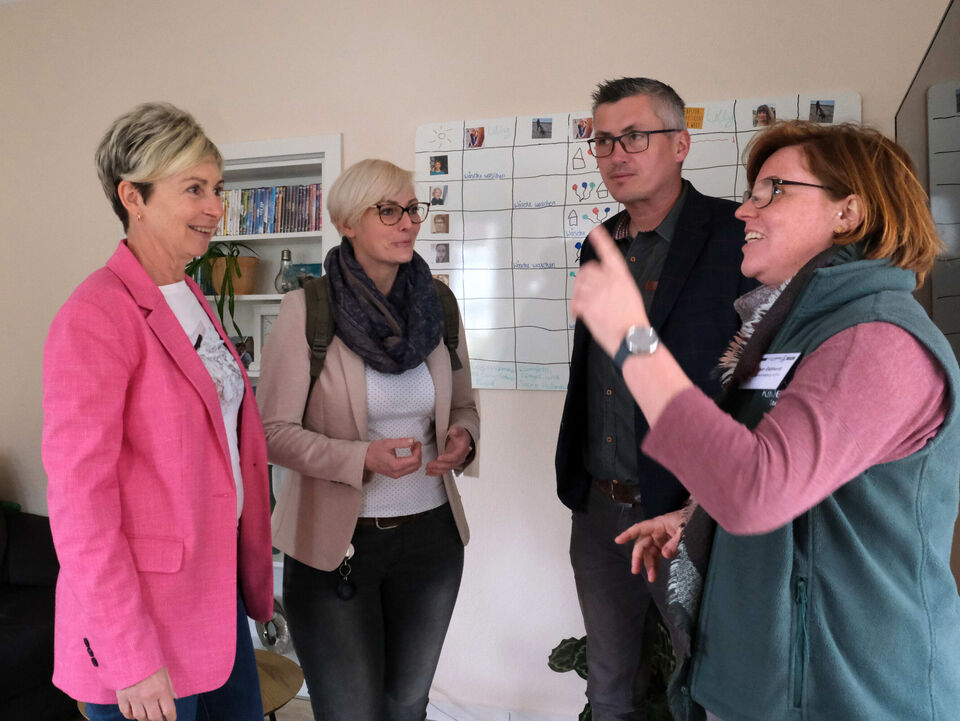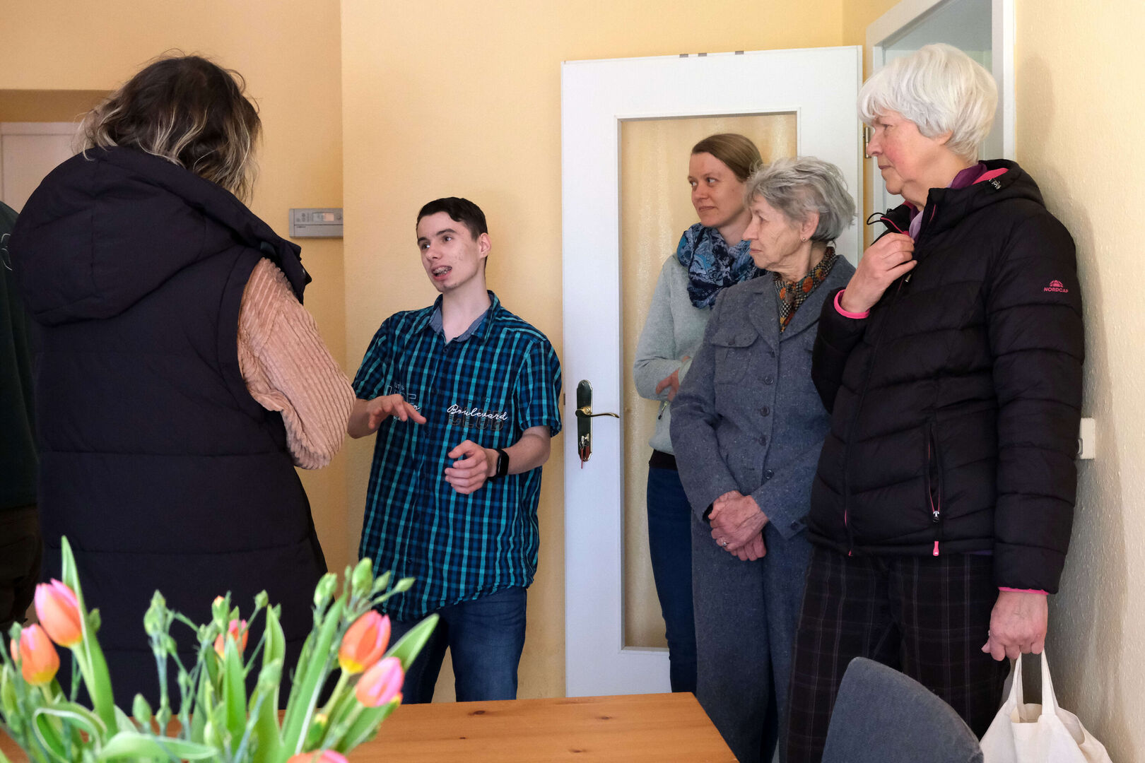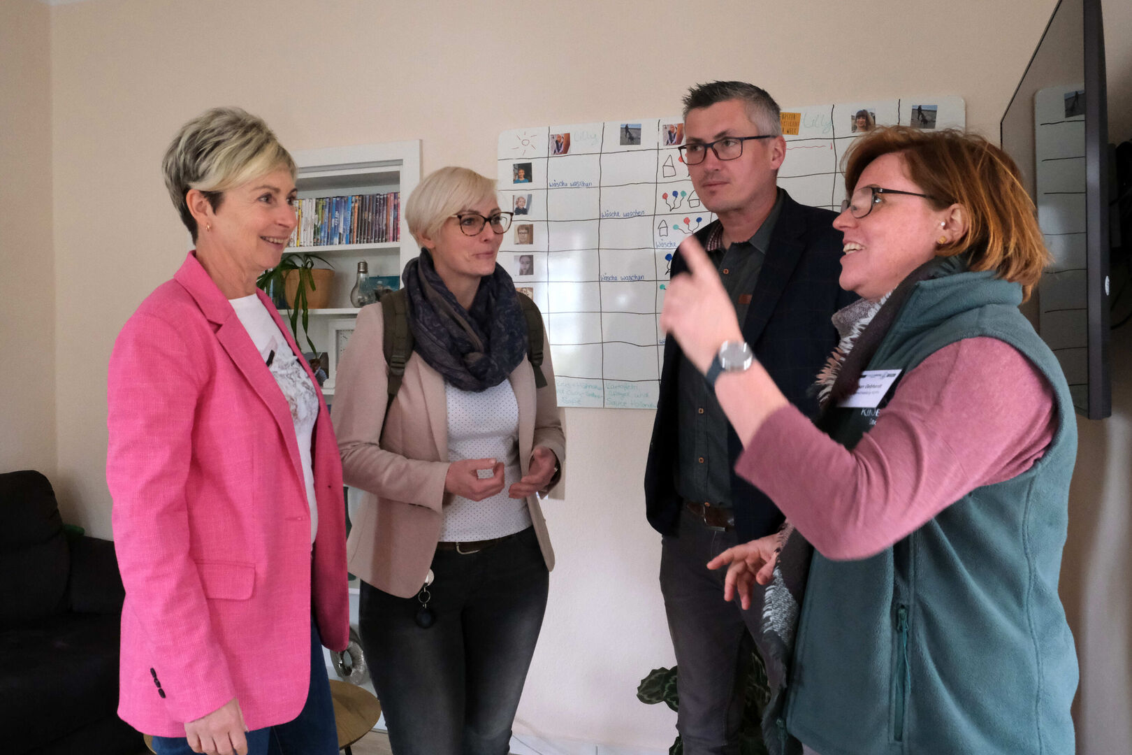 Bei einer Führung durch die Wohngruppe zeigten die Jugendlichen und Mitarbeitenden dann, wie sie sich eingerichtet haben, wer in welchem Zimmer wohnt, wo gemeinsam gekocht und gegessen wird und wie der Wochenplan funktioniert.