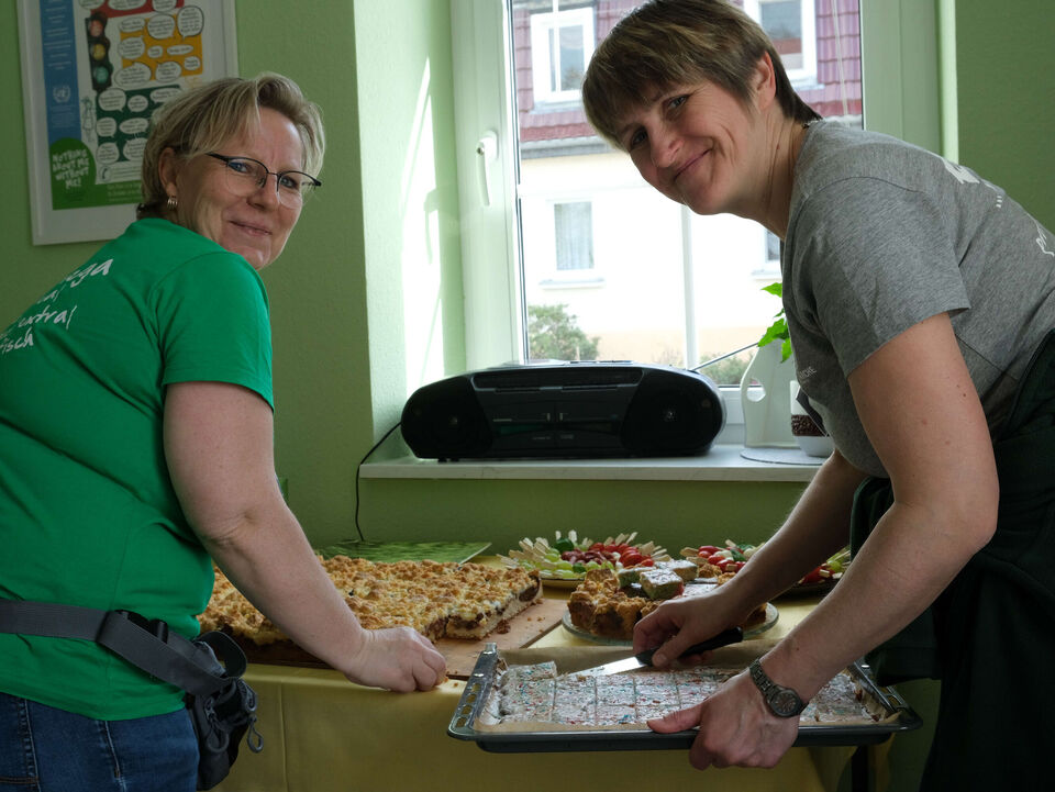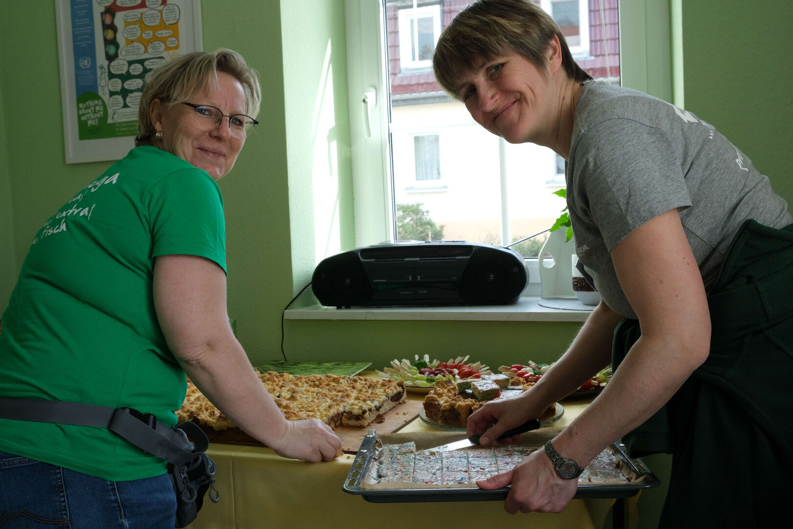 Im Hof kamen die Gäste zu Kaffee und kleinen Snacks zusammen und nutzten die Gelegenheit zu angeregten Gesprächen mit den Mitarbeitenden und Jugendlichen der Wohngruppe. Sandro und James waren mutig genug, vor den Gästen drei Tänze zu zeigen, und ernteten dafür viel Applaus.