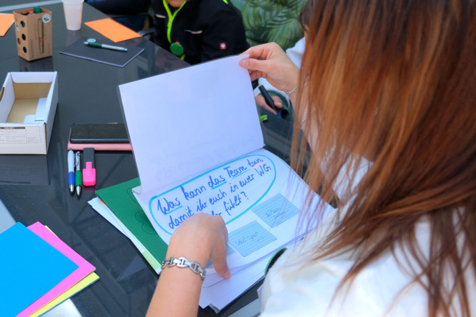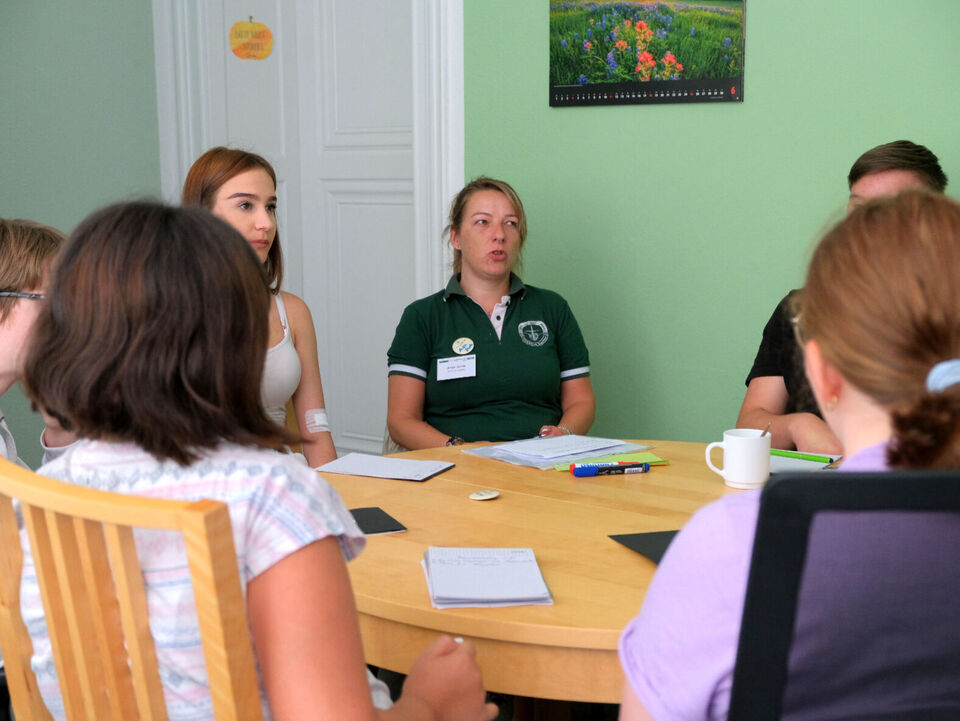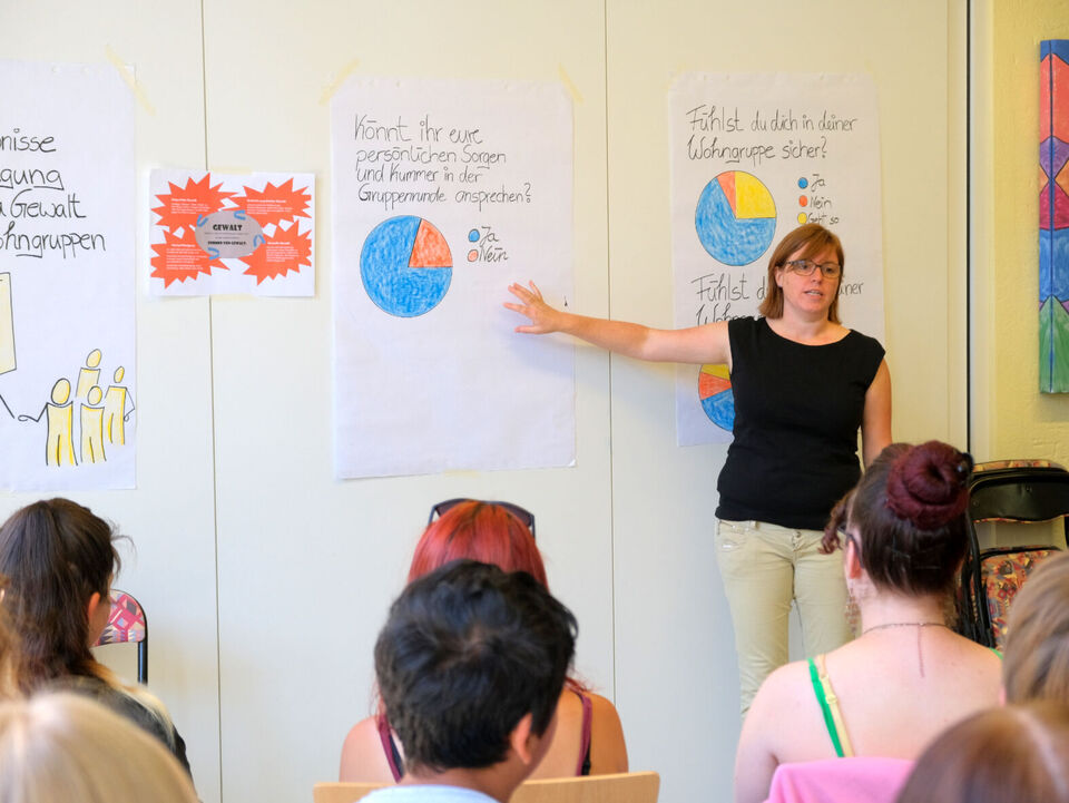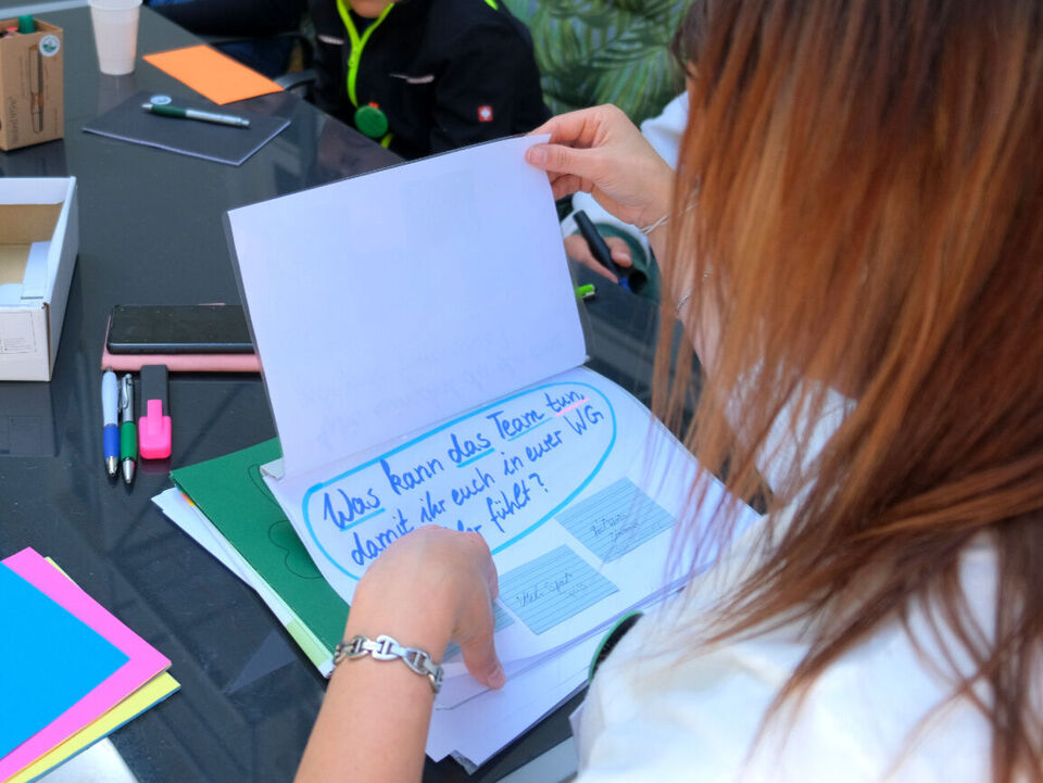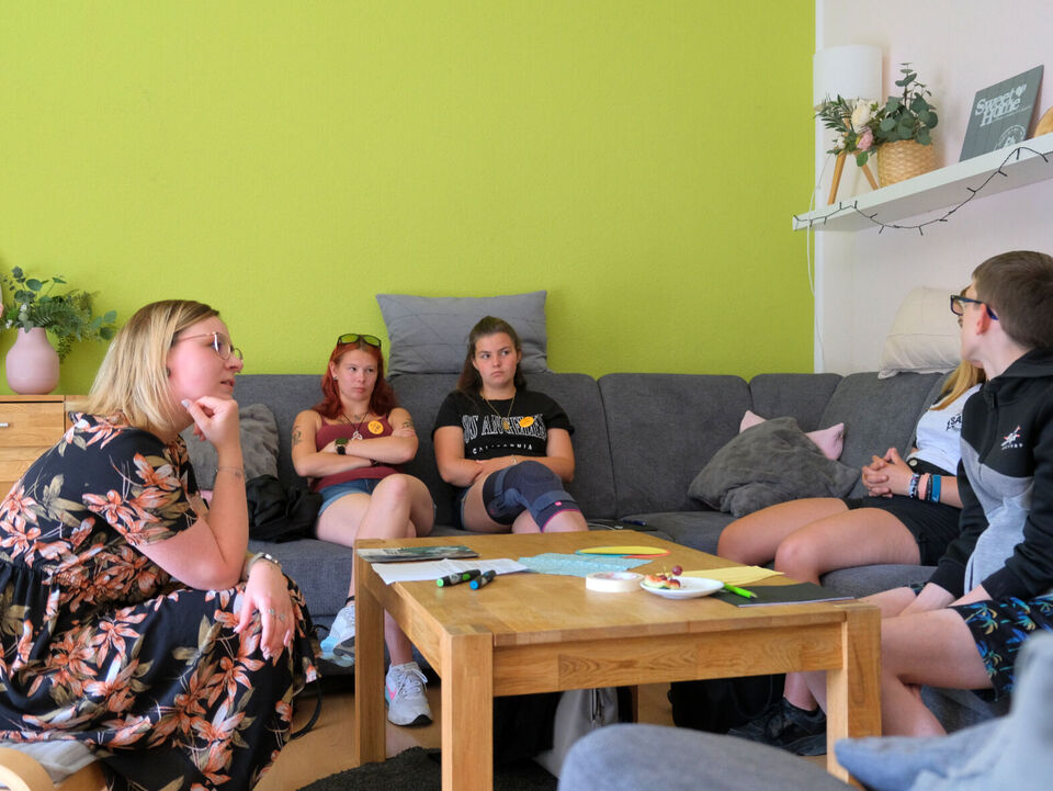 Wie Fachbereichsleiterin Susan Gebhardt erklärte, hatte die Befragung aller Kinder und Jugendlichen in unseren Wohngruppen vom November 2022 unter anderem gezeigt, dass die Gruppenrunde als wichtige Chance zum Reden und Schlichten von Konflikten gesehen wird. Da die Ausgestaltung in den Gruppen jedoch sehr verschieden gehandhabt wird, waren die Gruppensprecher dann gefragt, sich in kleineren Arbeitsgruppen auszutauschen. Fragen waren dabei zum Beispiel: Wie läuft die Gruppenrunde bei euch und welche Ideen und Wünsche habt ihr, damit Gruppenrunden gut gelingen?