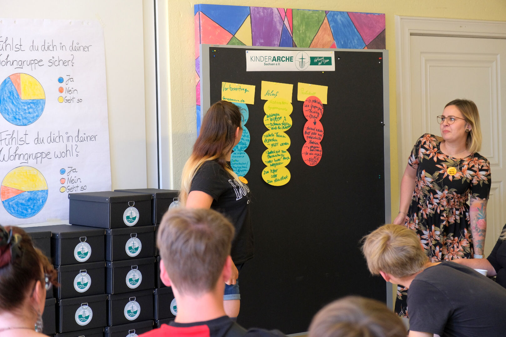 Kurz vor Beginn der Sommerferien hat sich die Kinderarche-Geschäftsstelle in Radebeul am Donnerstag in einen summenden Bienenstock verwandelt. 36 Gruppensprecherinnen und Gruppensprecher aus allen Wohngruppen des Vereins waren zu ihrem jährlichen Treffen zusammengekommen, um sich zu wichtigen Themen ihres Lebens in einer Wohngruppe auszutauschen.