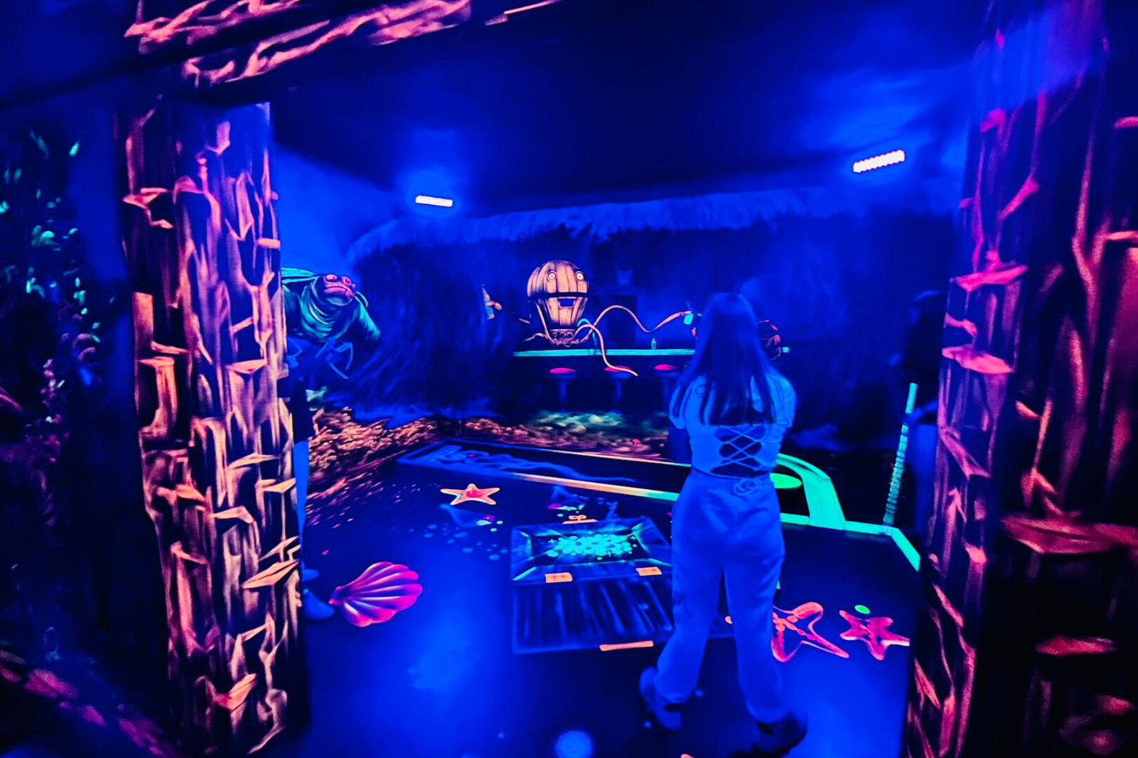 Nach der intensiven Arbeit am Vormittag ging es am Nachmittag dann gemeinsam ins BLACKLUXX, wo die Kinder und Jugendlichen sich beim Schwarzlicht 3D Minigolf ausprobieren konnten. Ausgepowert und gut gestärkt mit Eis und Muffins ging es für alle dann zurück in ihre Wohngruppen und in hoffentlich erholsame Ferien!