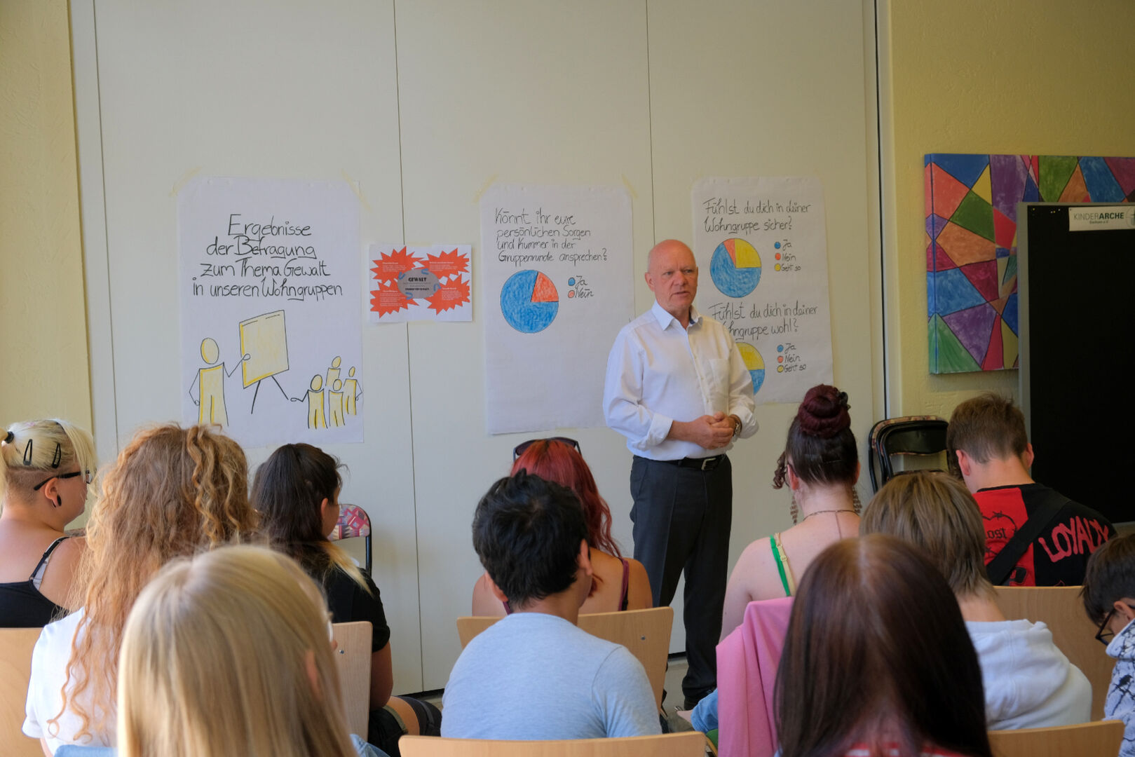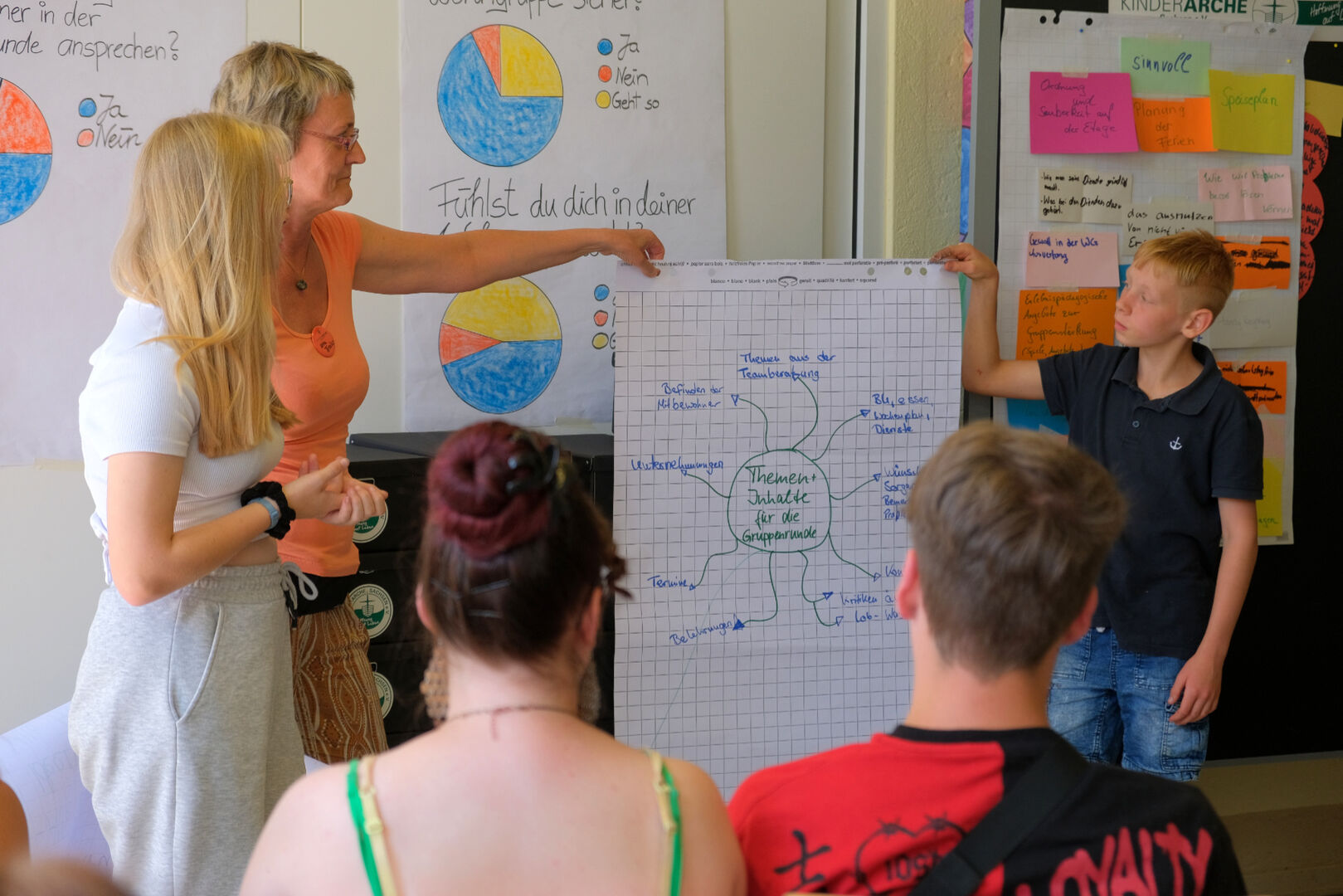 Kinderarche-Vorstand Matthias Lang dankte allen jungen Menschen für ihre guten Ideen. „Nur gemeinsam können wir dafür sorgen, dass es euch in euren Wohngruppen gut geht“, sagte er. Möglicherweise fließen die Anregungen und Vorschläge der Gruppensprecher nun in einen eigenen Fachstandard „Gruppenrunde“ ein, der die Rahmenbedingungen für dieses wichtige Instrument der Beteiligung und Mitbestimmung einheitlich regelt.