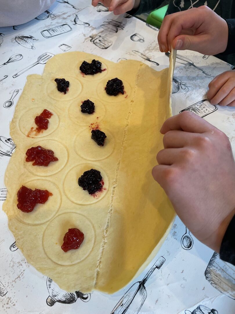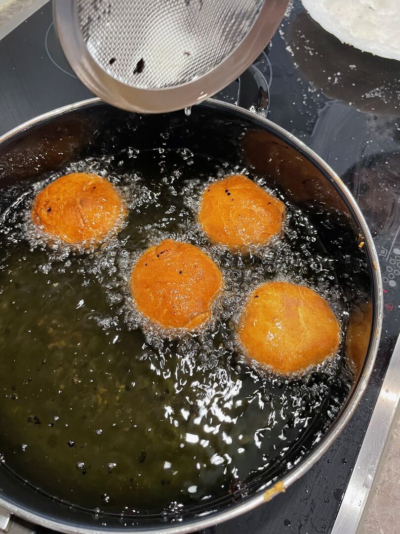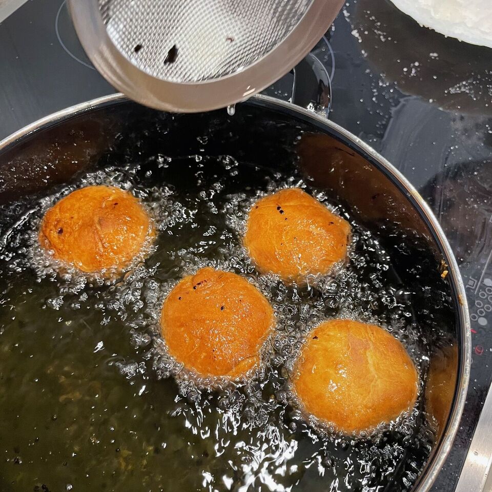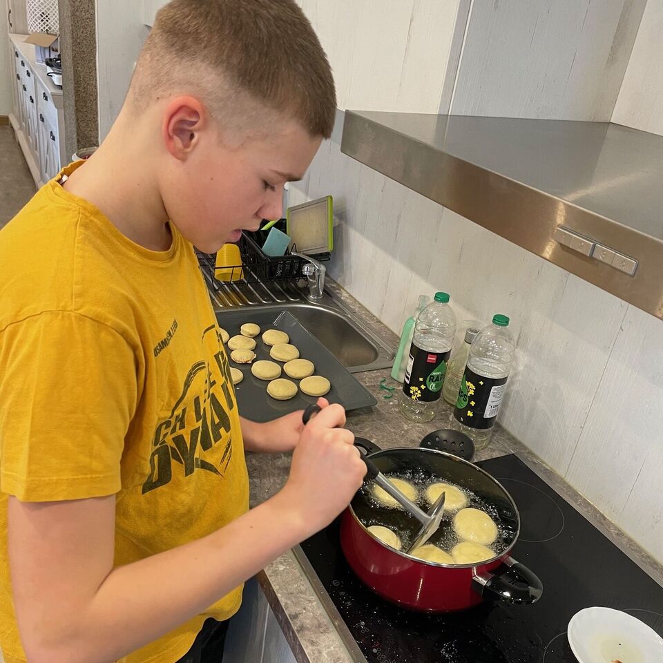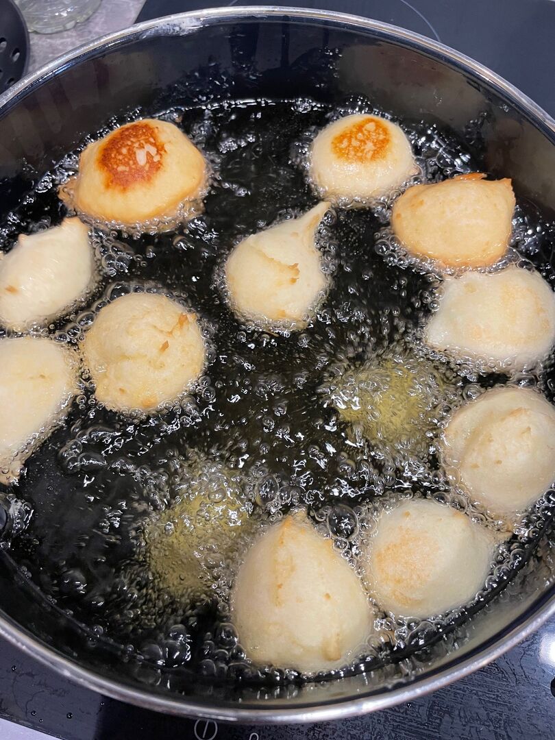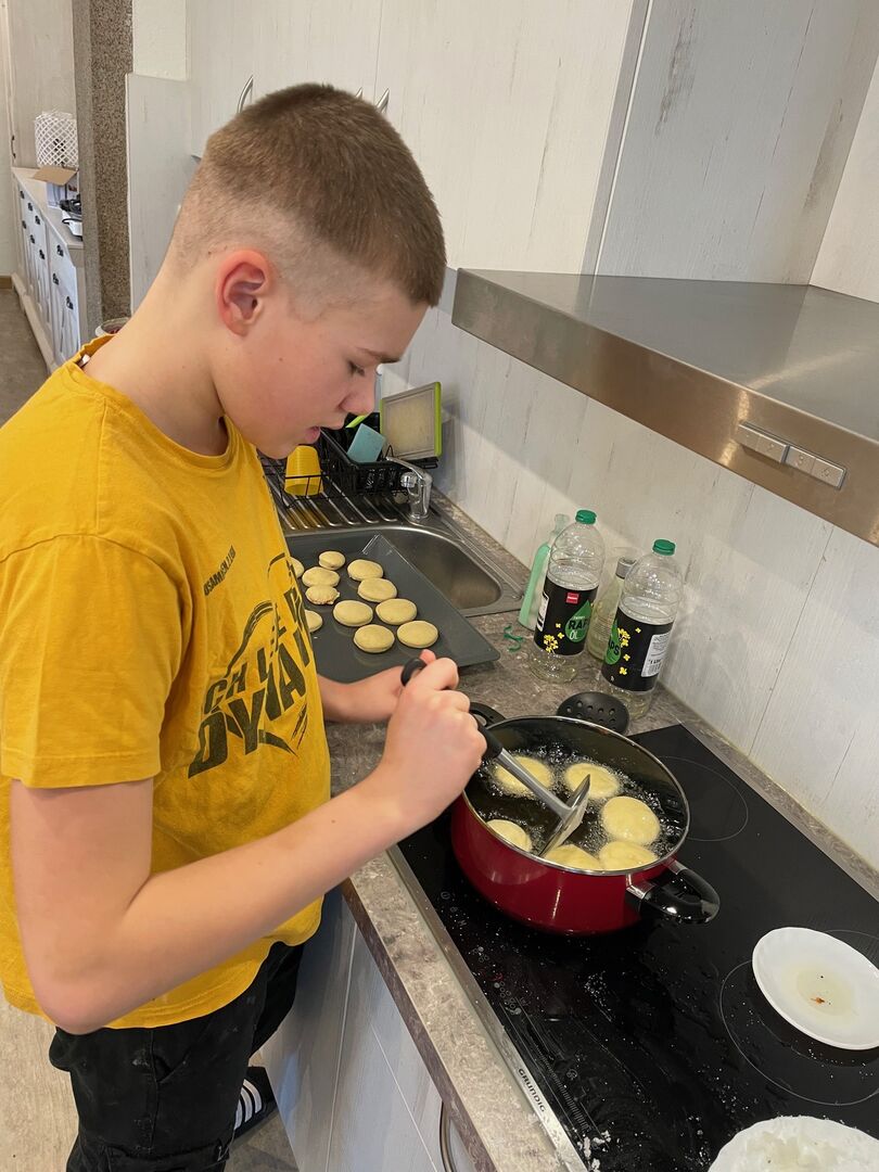 Ohne Pfannkuchen geht es natürlich zu Fasching nicht, aber wie man diese selbst macht und sieht, wie sie in Öl gebacken werden, das war für die Kinder sehr spannend.