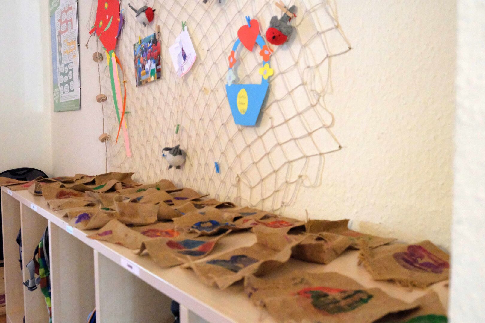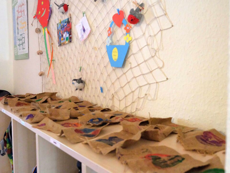 Eine Woche vor dem Tag der offenen Tür haben die fünf Jungs, die im „Katschwitzer Hof“ leben, gemeinsam mit der Sozialpädagogin Sophie Dieckmann schon eine Girlande zum Verzieren des Hauses vorbereitet. Mit Äpfeln aus dem eigenen Garten und kräftiger Farbe haben sie Stoffstückchen bedruckt, die anschließend aufgefädelt werden. Auch einen Tanz haben die Jungs vorbereitet, den sie den Gästen zeigen wollen.