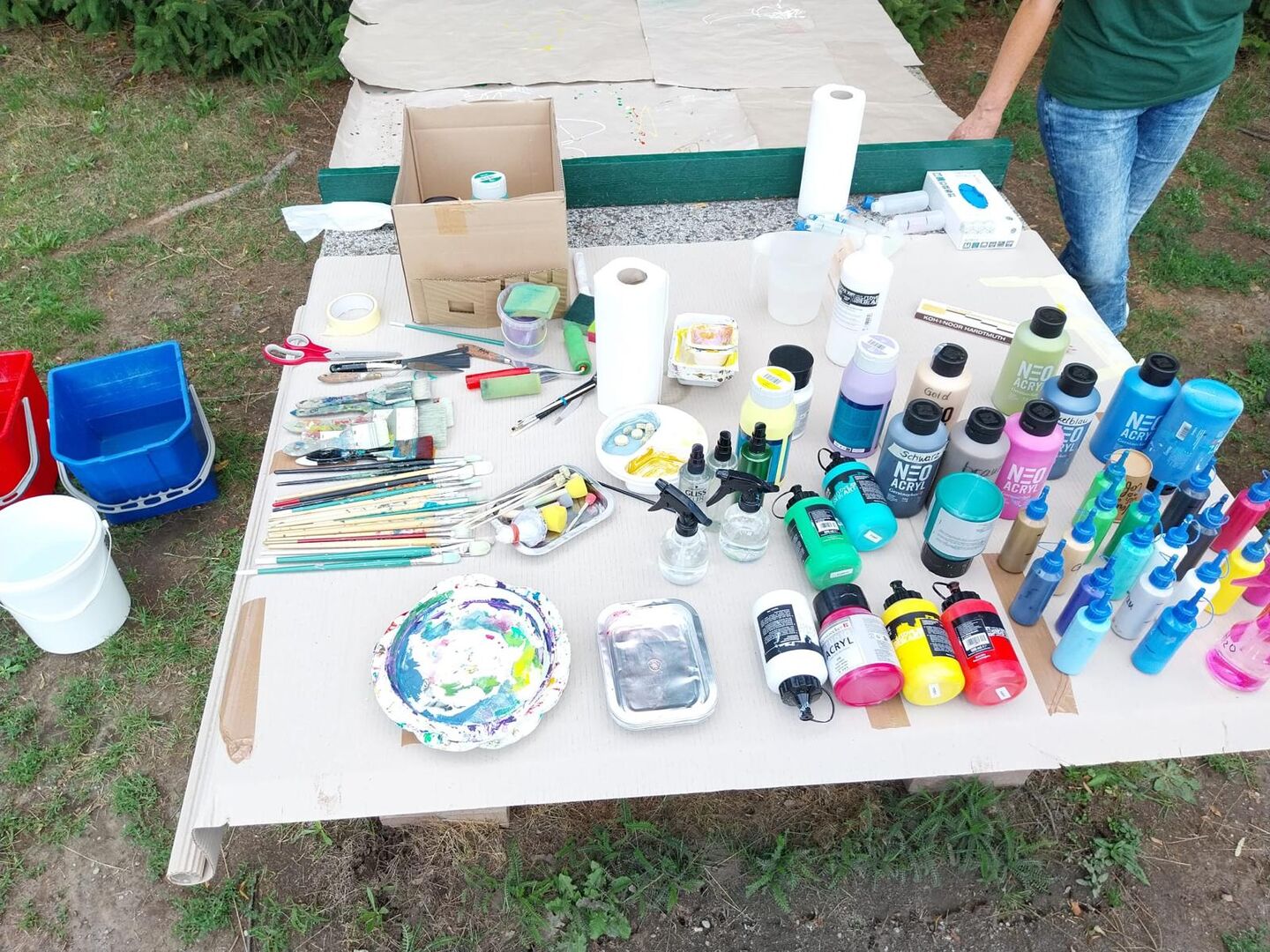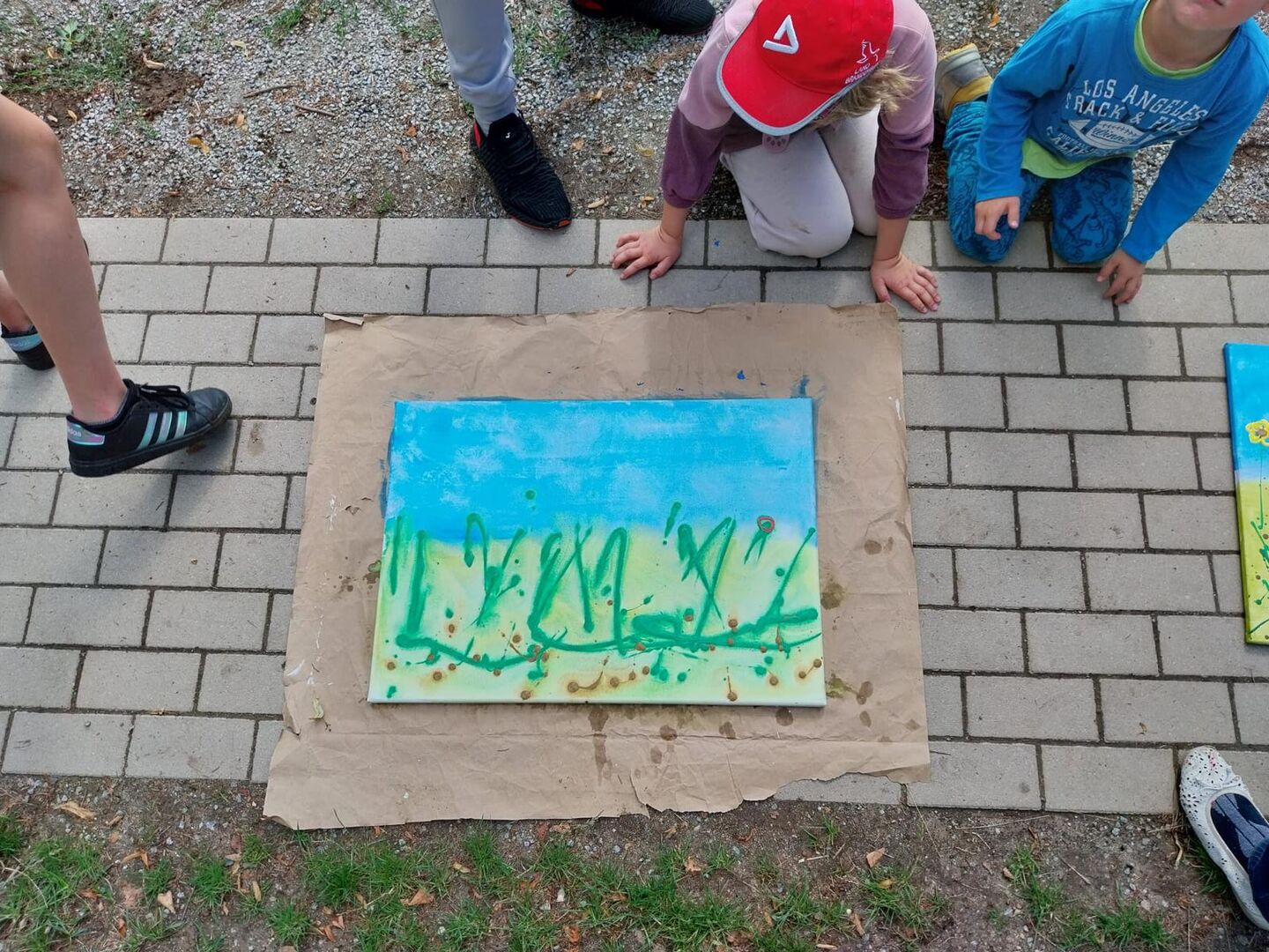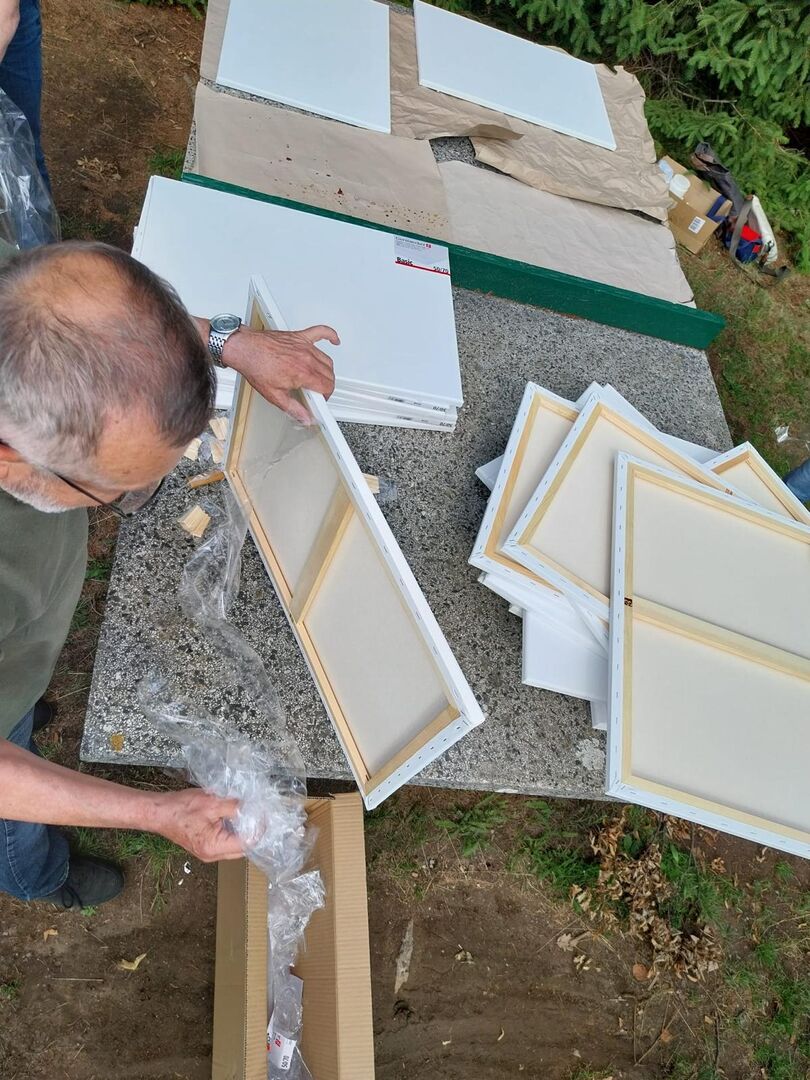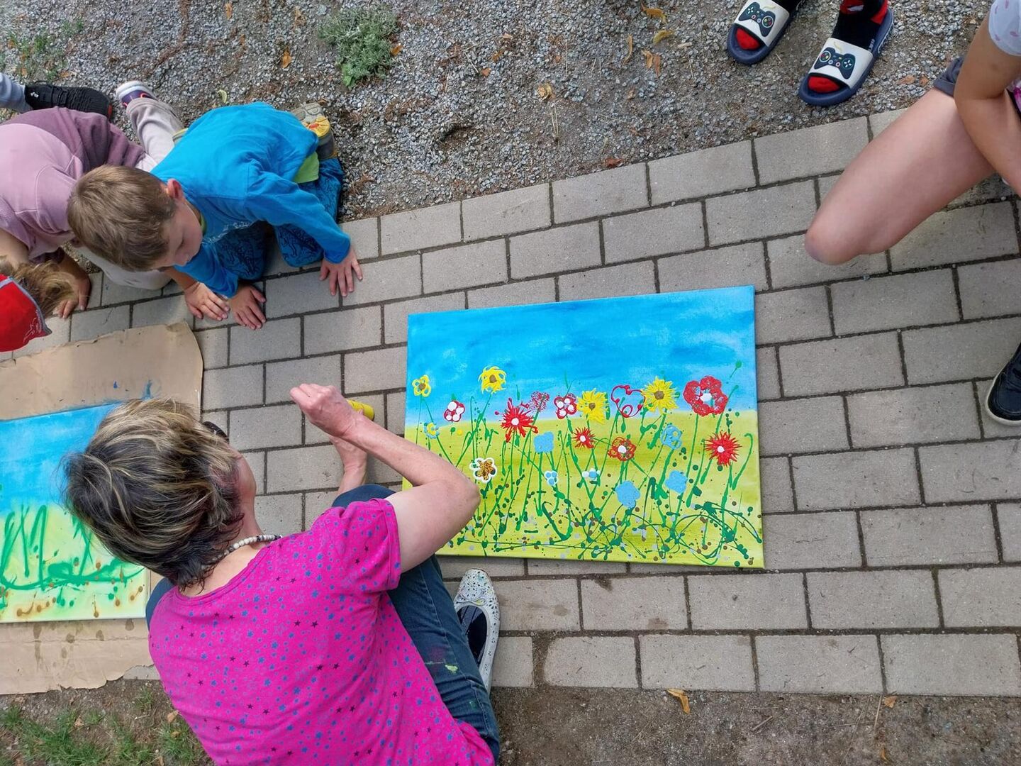 Die Mal-Vormittage finden meist in den Ferien und immer draußen statt. Angela bringt dafür alle Materialien mit: bunte Farben, Pinsel, Leinwände, Stempel, Schwämme. So können die Kinder und Jugendlichen ganz frei und sorglos ihre kreative Ader im Freien entfalten.