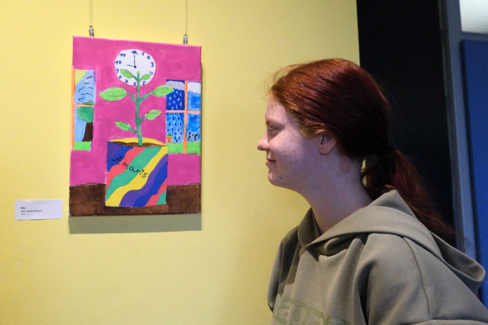 Ihr Bild ist eines von vielen, das noch bis zum 6. Mai in der Ausstellung „Leinen los! Kunst der Kinderarche“ in der Frauenkultur im Werk II in Leipzig zu sehen ist. Zur Vernissage am Freitag war hier großer Bahnhof, denn alle jungen Künstler:innen durften so viele Menschen einladen, wie sie wollten. Und so waren zahlreiche Eltern, Geschwister, Freunde, Lehrer und Vormünder gekommen – und staunten nicht schlecht, was sie zu sehen bekamen.