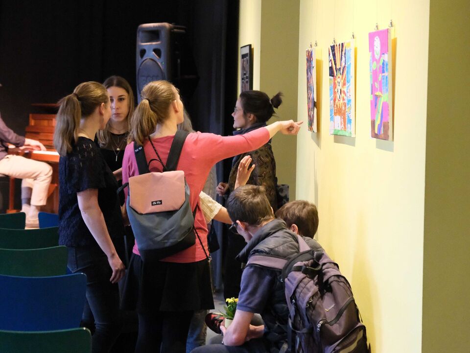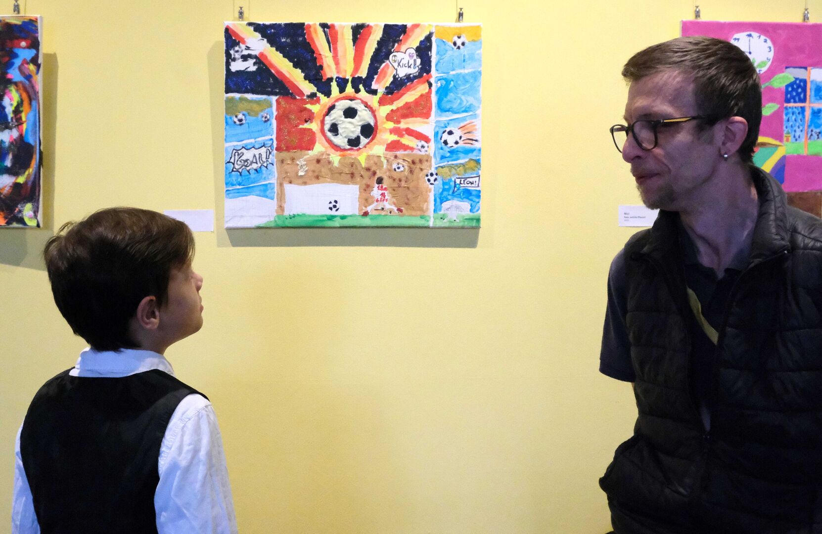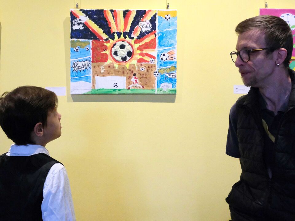 Zur Ausstellungseröffnung spürt man die Leidenschaft der Kinder für ihre Werke und für die Kunst, viele führen ihre Gäste ganz bewusst zu ihrem Bild und erzählen stolz, was da zu sehen ist und was sie damit ausdrücken wollten.