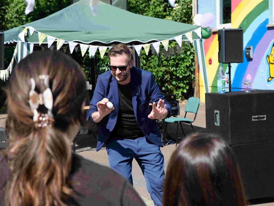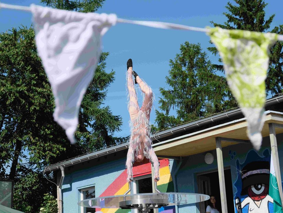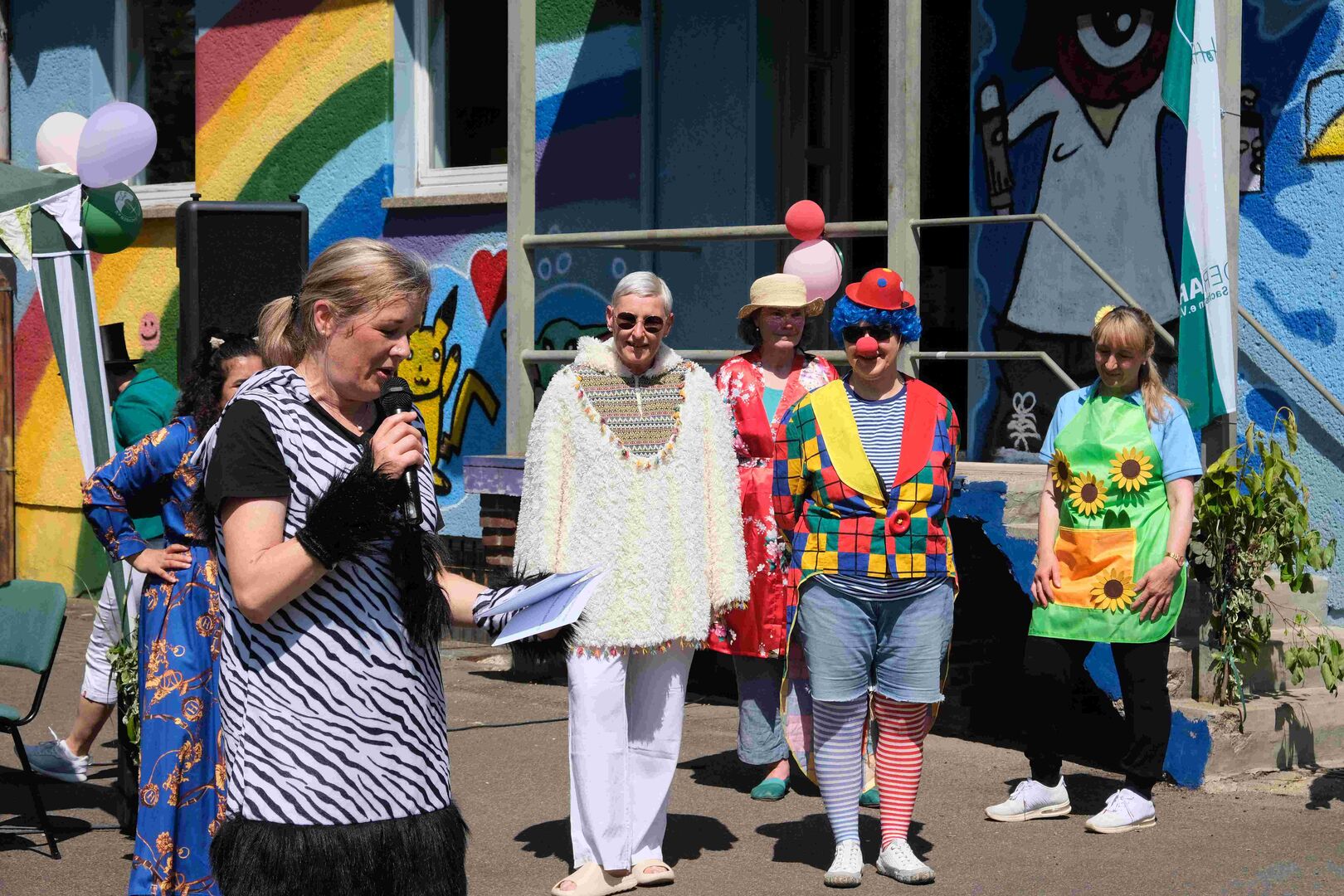 Den Startschuss gaben die Mitarbeitenden des Hauses in fröhlicher Verkleidung mit dem Lied „Heut ist so ein schöner Tag!“ Einrichtungsleiterin Annett Schreckenbach-Launhardt begrüßte alle Gäste und lud herzlich zum Kuchenbuffet ein. Dann übernahm Zauberer Pierre van Houdt und beeindruckte die kleinen und großen Zuschauer mit atemberaubenden Tricks. Beeindruckend war auch die Vorstellung des Artistenvereins Chemnitz, der den Reigen des Programms abschloss.
