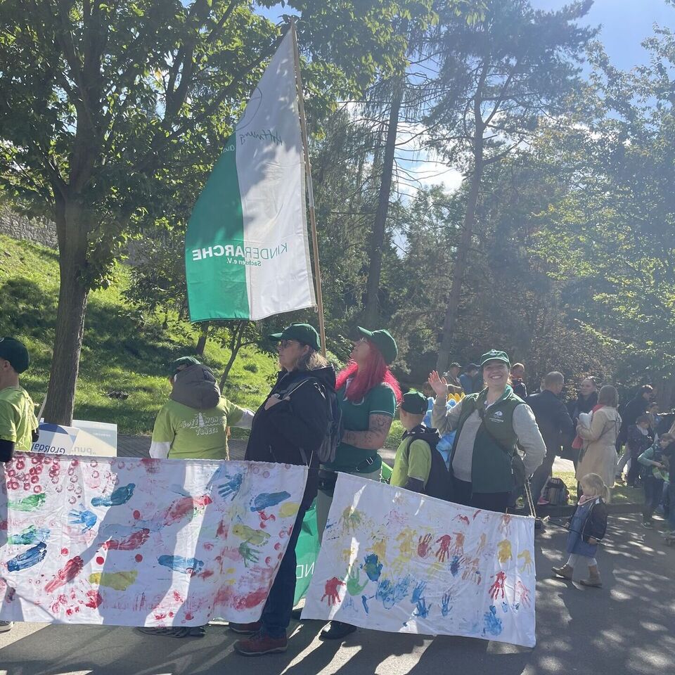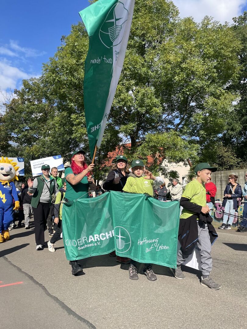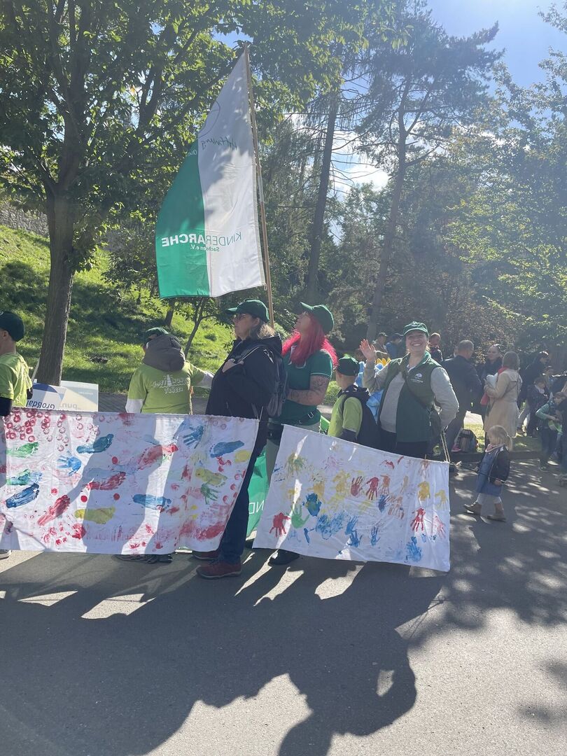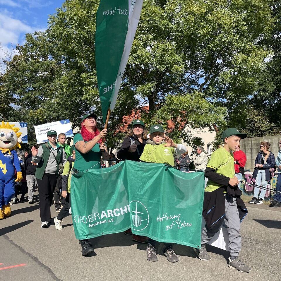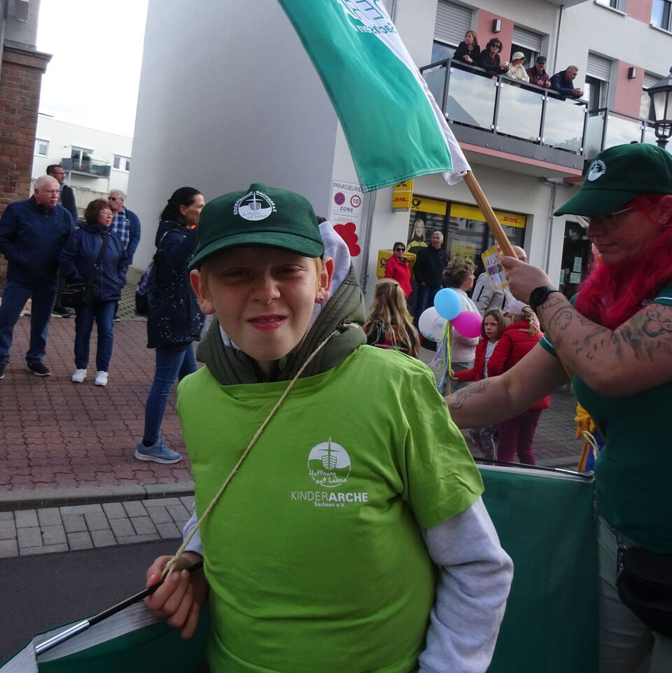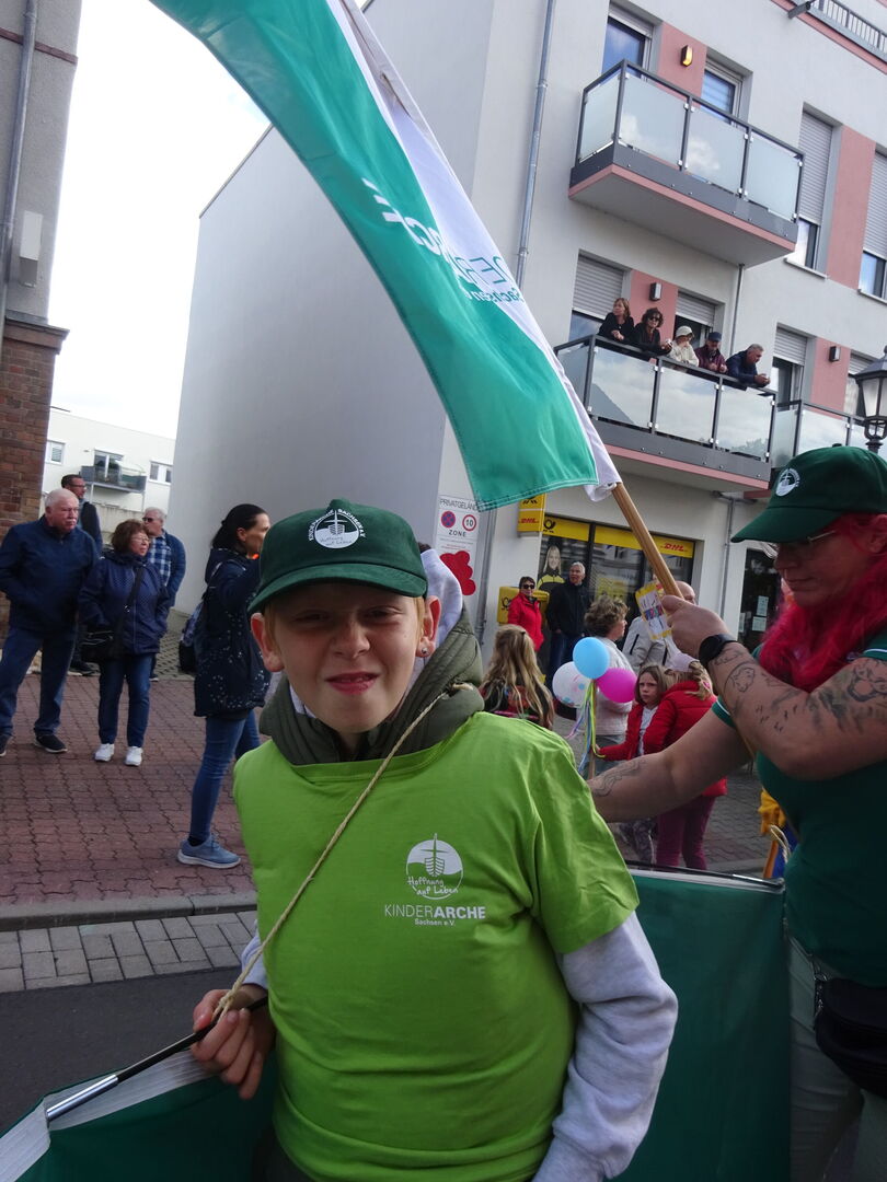 Am letzten September-Wochenende hat die Stadt Zwenkau ihr 1050-jähriges Jubiläum gefeiert – und unsere Tagesgruppe war für den Ortsteil Großdalzig mit im Boot. Gemeinsam mit der Kunstpädagogin Christiane König vom Jugendbüro Groitzsch-Pegau haben die Kinder die Gestaltung unserer Arche in die Hände genommen, um beim großen Umzug mit mehr als 600 Akteuren ihre Fußspuren zu hinterlassen. Es war uns ein Fest, dabei sein zu dürfen!