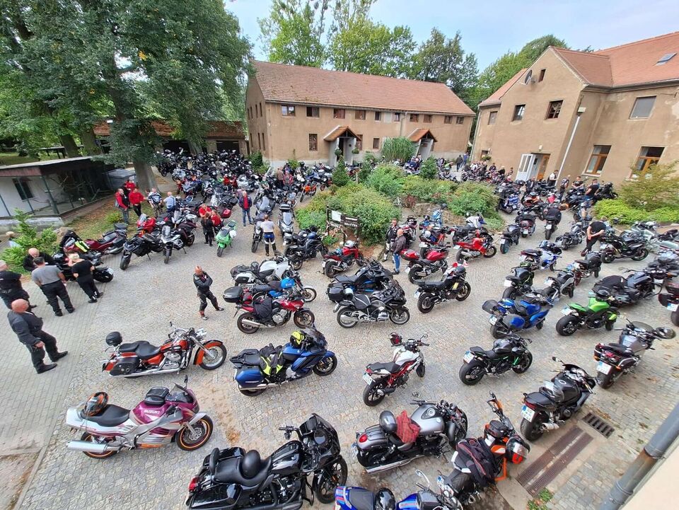 Waaaahnsinn, das gab es noch nie! Unglaubliche 232 Biker kamen zur 17. Kinderheimausfahrt der Motorradfreunde Oberlausitz am Samstagmorgen auf dem Hof von unserem „Haus am Czorneboh“ in Wuischke zusammen. Das sind fast 50 mehr als zur Ausfahrt im vergangenen Jahr! Entsprechend fröhlich war die Stimmung, groß das „Hallo“ und die Wiedersehensfreude, aufgeregt die Kinder und laut die Motoren der zahlreichen Maschinen.