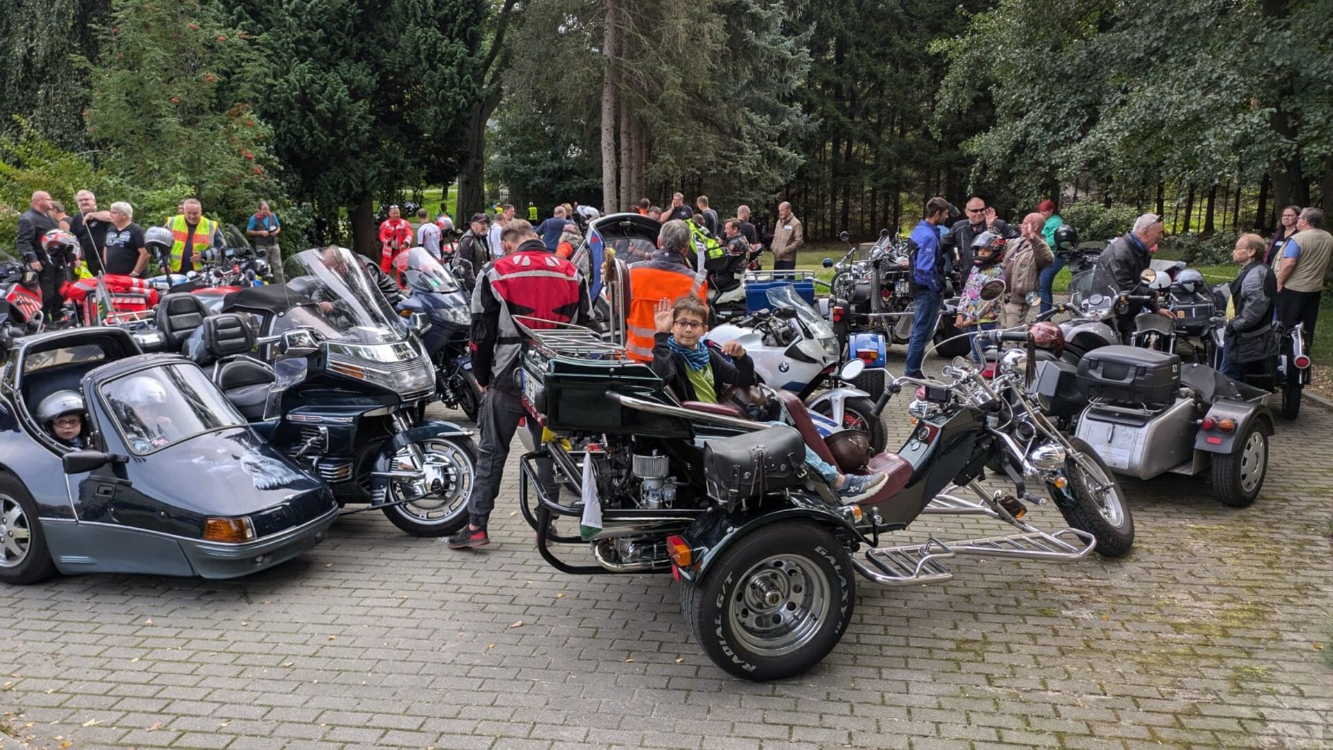Weiter ging es für alle in den Tier- und Kulturpark Bischofswerda, wo der Förderverein die hungrigen Mägen mit leckerem Nudelsalat mit Bockwurst oder Wienern versorgte und Zeit zum Entspannen und für einen individuellen Bummel durch den Zoo war. Nach der stärkenden Pause fuhr der Konvoi weiter nach Niesendorf, ein Campingplatz am See mit super netten Leuten, Spielplatz, Kaffee und Kuchen sowie zwei Kugeln Eis für jedes Kind. Von dort ging es durch die wunderschöne Oberlausitz zurück nach Wuischke, wo die Biker und ihre glücklichen Mitfahrer den Abend gesellig ausklingen ließen.