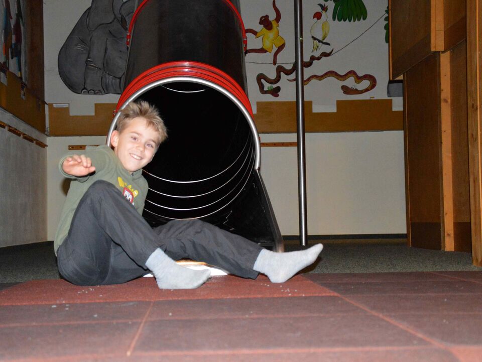 Frau Stock und ihr Mann erwarteten uns bereits. Nachdem sich zeigte, dass unsere Kinder ganz dringend erstmal das Haus erkunden wollten, beschlossen wir gemeinsam, den bereitgestellten „Stockhausenkuchen“ etwas später zu genießen. Da wir alleinige Gäste waren, konnten die Kinder gleich alle drei Etagen erobern. Uns erwarteten eine Megarutsche, ein begehbarer Kaufmannsladen, eine Kletterburg und vieles, vieles mehr.