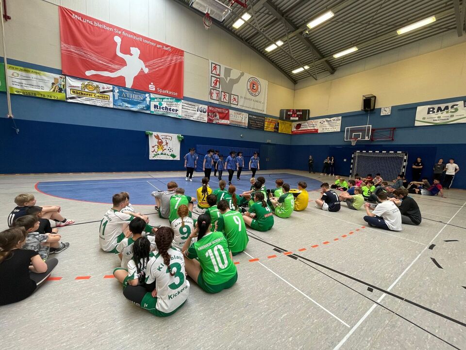 Neben spannenden Spielen gab es ein buntes Rahmenprogramm: Das Sportpromotion-Team des Kreissportbundes Bautzen sorgte mit einer Hüpfburg und weiteren kniffeligen Sportspielen für Abwechslung während der Pausen. Katja Morenz von Knopf`s Holzwerkstatt rundete unser kreatives Bastelangebot ab. Die Kinder konnten nach Lust und Laune tolle österliche Holzobjekte gestalten und Ostereier bemalen.