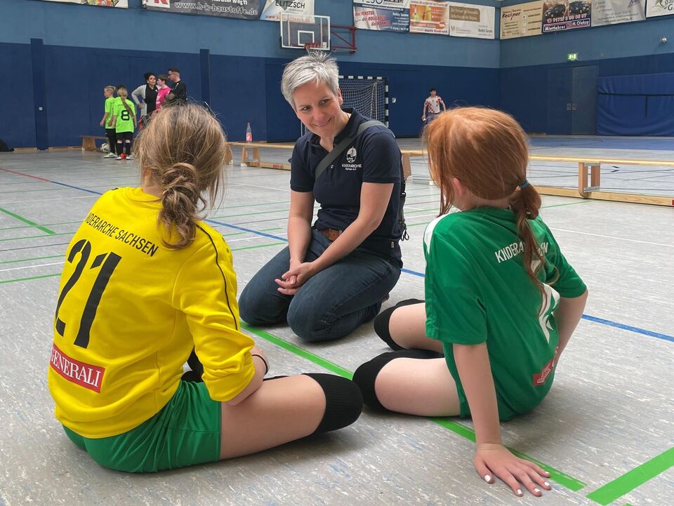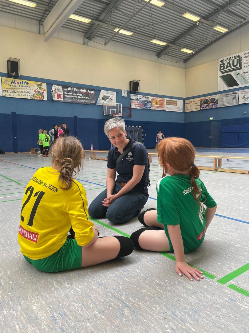 Die Schirmherrin, Landtagsabgeordnete Elaine Jentsch, und Barbara Gärtner als neue Vorständin der Kinderarche Sachsen eröffneten gemeinsam mit Einrichtungsleiterin Franziska Bönke den Fußball- und Erlebnistag verbunden mit den Wünschen für ein fröhliches Turnier voller Emotionen, Bewegung und toller Begegnungen!