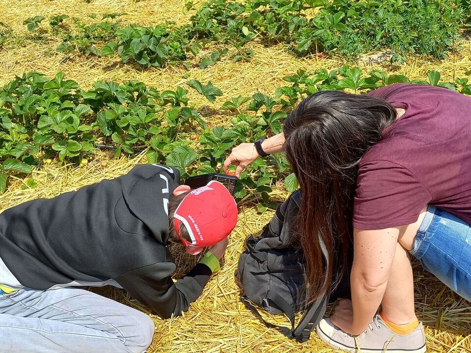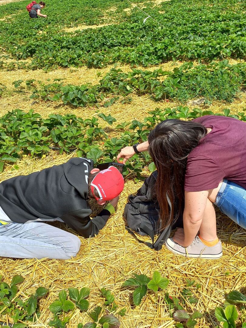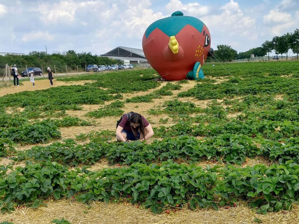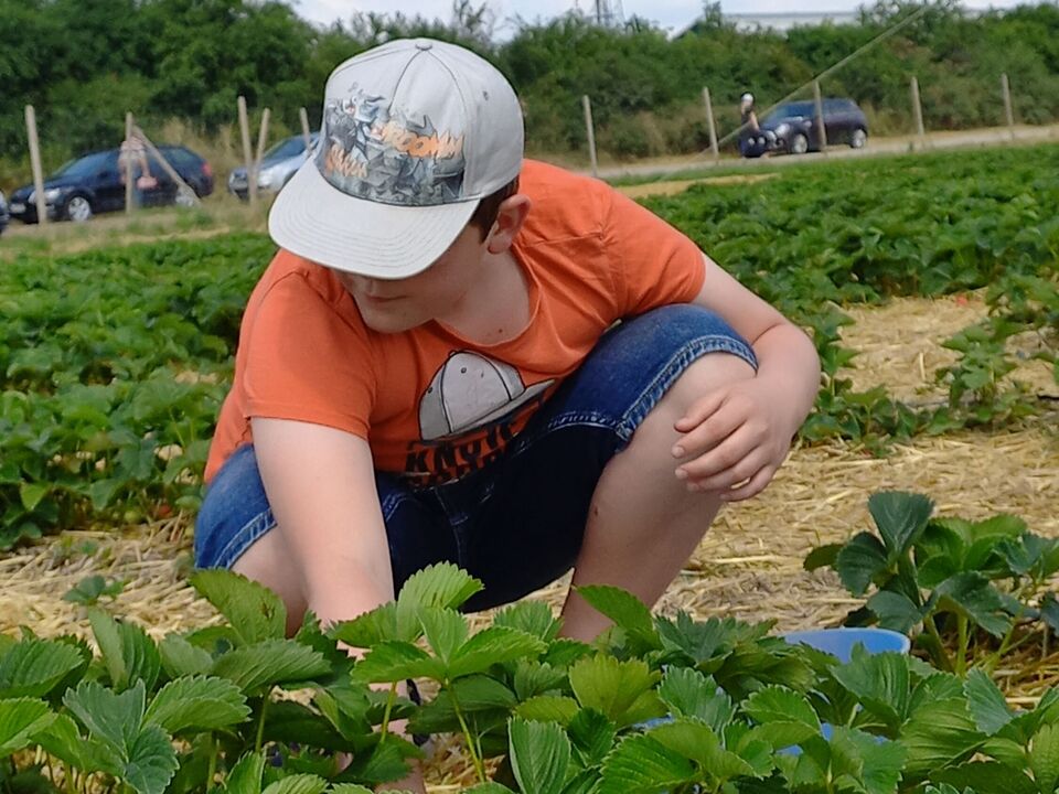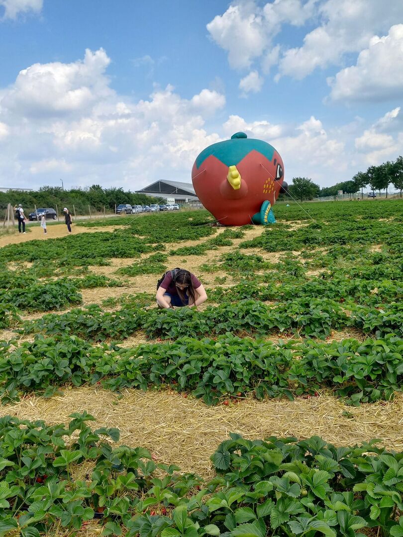 Jedes Jahr fragen die Kinder und Jugendlichen der Wohngruppe 1 auf der Markkleeberger Hauptstraße schon im zeitigen Frühjahr, wann endlich wieder der Erdbeertag stattfindet. Am 17. Juni war es jetzt endlich soweit. Vier hochmotivierte Kinder mit ihren Erzieherinnen machten sich auf zum Erdbeerfeld nach Leipzig-Großzschocher. Zuerst mussten unsere Körbe und Schüsseln gewogen werden und dann ging es ab aufs Feld rings um die Riesenerdbeere, die schon von weitem auf die die Köstlichkeit dieses Ortes hinweist.