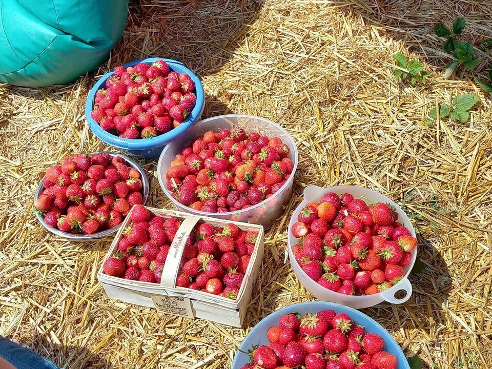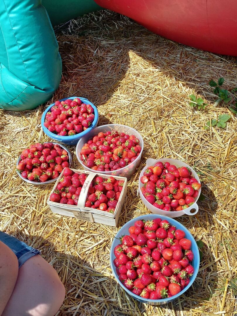 Am Ende des Tages konnte sich ein tolles Ergebnis sehen lassen: 21 Gläser Marmelade, eine Erdbeertorte, Erdbeereis, Erdbeermilch und als Belohnung Vanilleeis mit Erdbeeren.