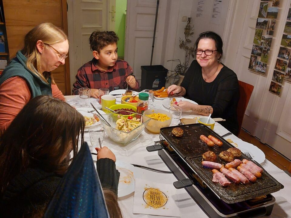 Gut gesättigt und zufrieden war es Zeit, ein wenig inne zu halten und das vergangene Jahr Revue passieren zu lassen. Wir machten uns Gedanken darüber, was wir erlebt haben und worüber wir dankbar sind. Und das war beeindruckend viel: So fielen immer wieder die Namen unserer ehrenamtlichen Mitarbeiter. Allen voran Peter, welcher unermüdlich Fahrräder repariert, sich jeden Sonntag zur Sportstunde mit Evin trifft und auch sonst viele tolle Erlebnisse mit den Kindern und Jugendlichen durchführt. Auch sind wir Martina sehr dankbar, welche regelmäßig mit den jungen Bewohnern leckere Salate zubereitet; oder Marie, die wöchentlich die Wohngruppe besucht, um unserer Jugendlichen Nachhilfe zu geben. Zudem danken wir Rüdiger mit seinen geschickten Händen und kreativen Ideen zur Reparatur diverser Dinge in unserer Einrichtung.
