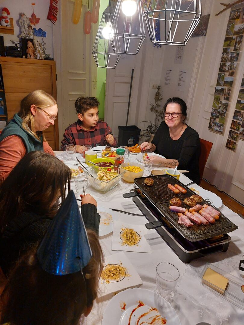 Zur zwischenzeitlichen Stärkung gab es auf Wunsch von Leon ein leckeres Raclette. Für Rosalie und Evin war dies zwar eine völlig neue Erfahrung. Allerdings können sie sich durchaus vorstellen, daraus eine feste Tradition zu etablieren.