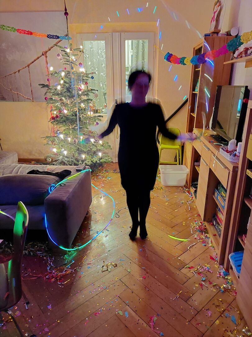 Partytime in der WG Hauptstraße: Wir verbrachten den letzten Abend des Jahres damit, zu tanzen, zu singen, mittels Bleigießen ein wenig in die Zukunft zu schauen, James zu dekorieren und erneut zu tanzen.