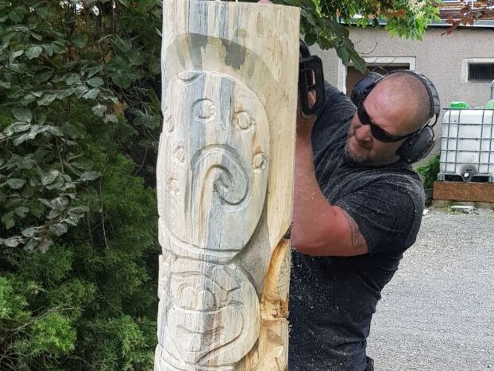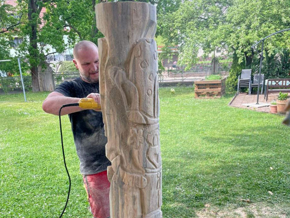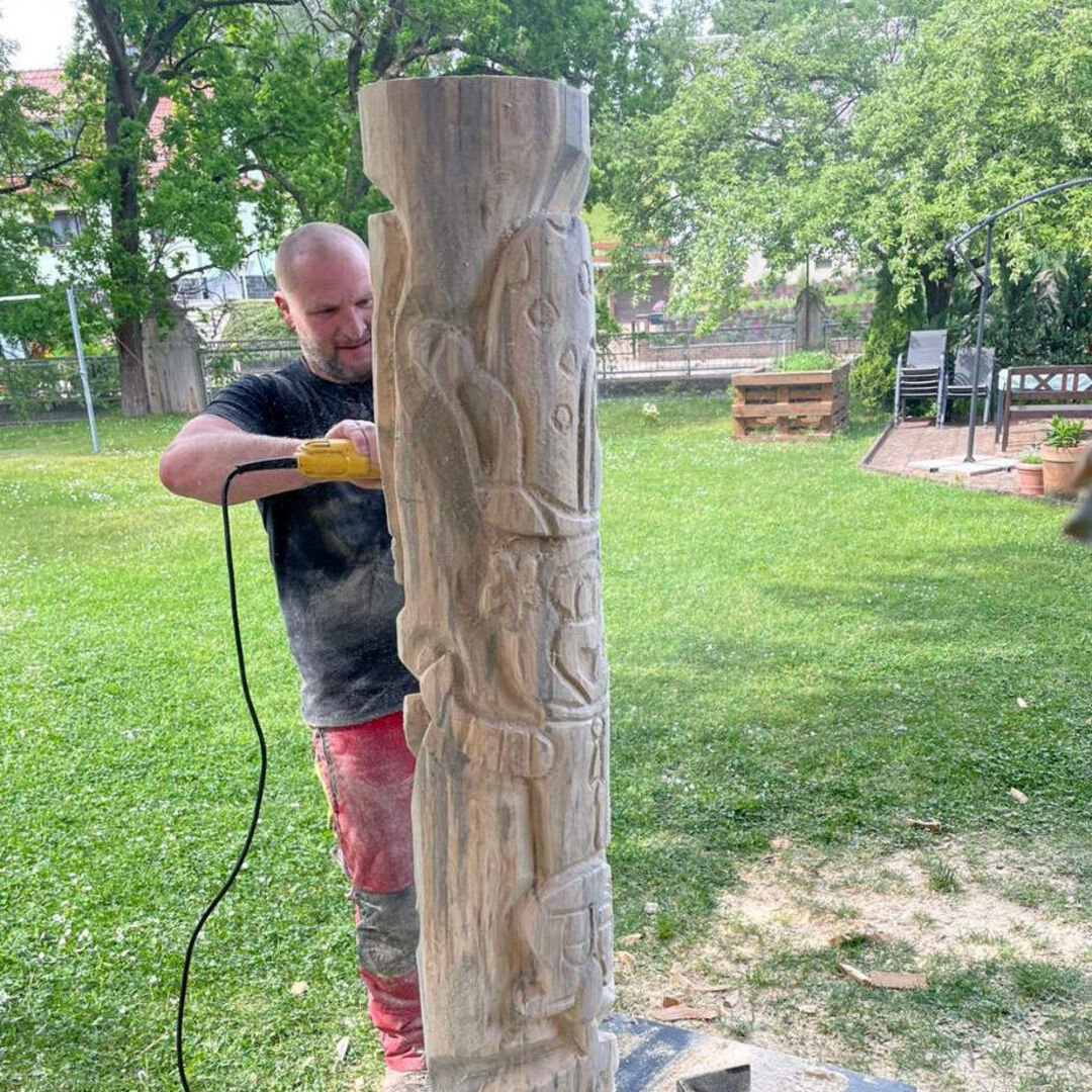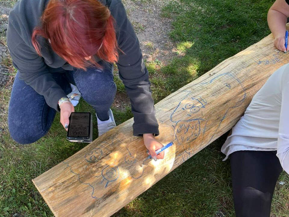 Spielprojekt Leubnitz: Mädchen gestalten eigenen Totempfahl