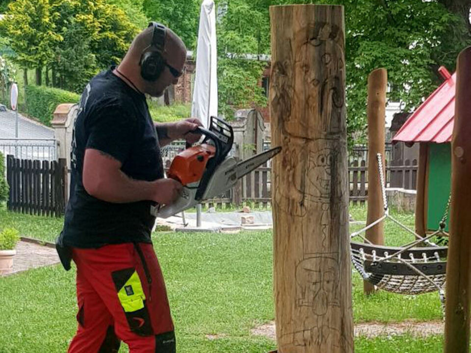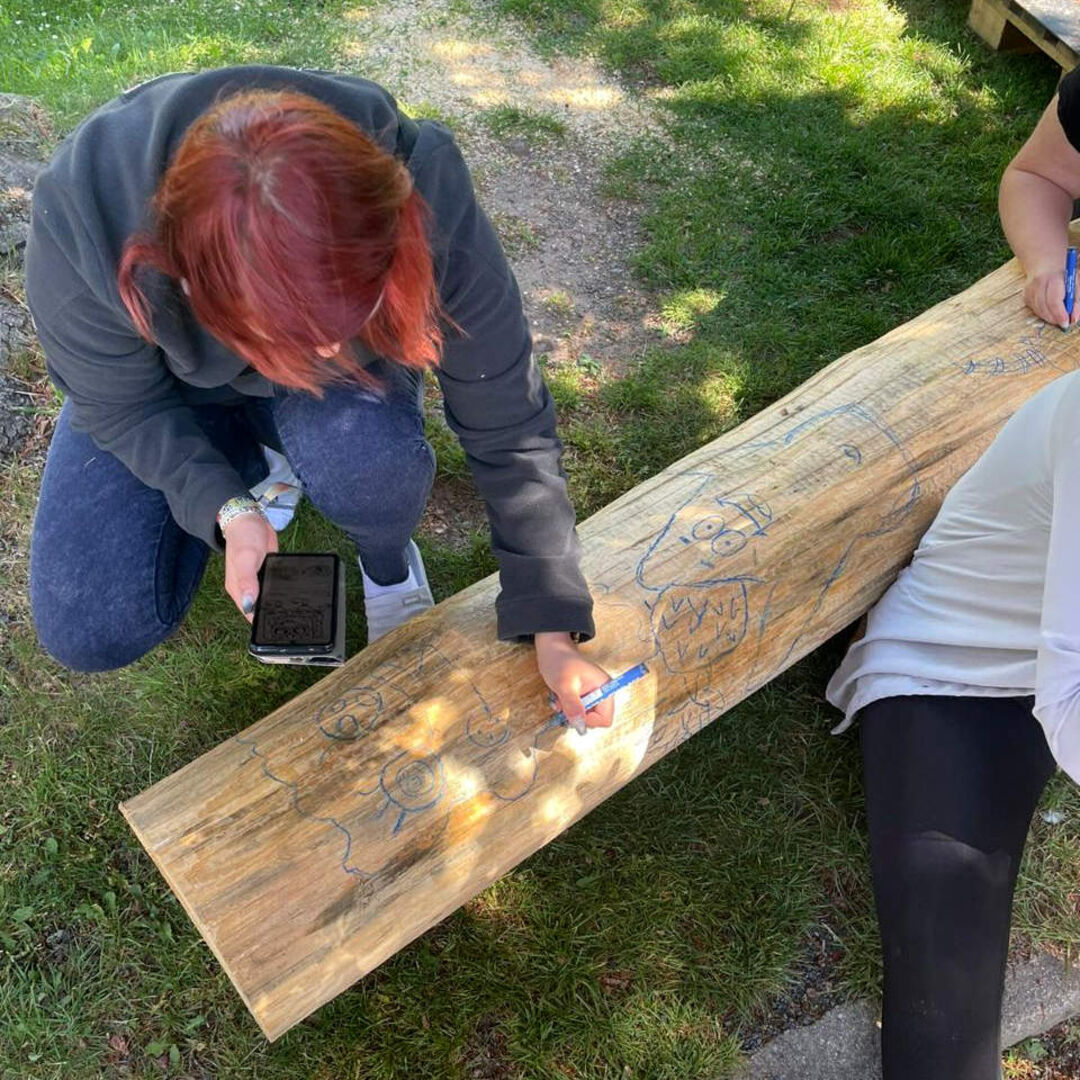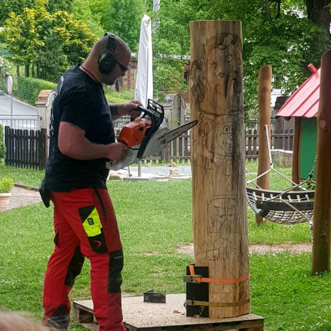 Die konnten zuerst ihre Lieblingsfigur mit Wachsmalstiften auf den Stamm übertragen, bevor sie der Profi mit der Kettensäge ausgeschnitzt hat. Zum Schluss waren die Mädchen wieder gefragt. Sie konnten ihrer Figur noch den Feinschliff mit der Schleifmaschine geben und sie anschließend bemalen. Wir finden: Das Ergebnis kann sich wirklich sehen!