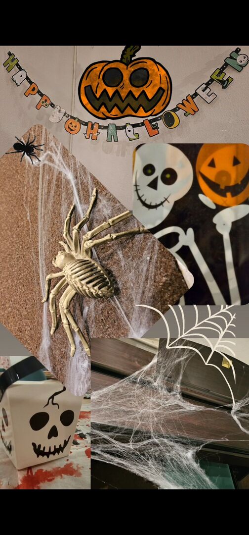 Ab 15 Uhr startete unsere Halloweenparty im Veranstaltungssaal der „Alten Wäscherei“ auf unserem Gelände. Es gab neben Monster- und Spinnenmuffins mit Geisterbowle auch Musik und Spiel. Zum Beispiel wurden viele Runden bei der Stuhlpolonaise gedreht oder Stopptanz getanzt. Inmitten von Hexen und schaurigen Gestalten wurde gesungen, gelacht und genascht. Nach dem fröhlichen Nachmittag gab es einen düsteren, schwarzen Nudelsalat mit Wiener zum Abendbrot. 18.30 Uhr endete unsere schöne Party und alle fielen glücklich, müde und erschöpft von den Ereignissen des Tages ins Bett.