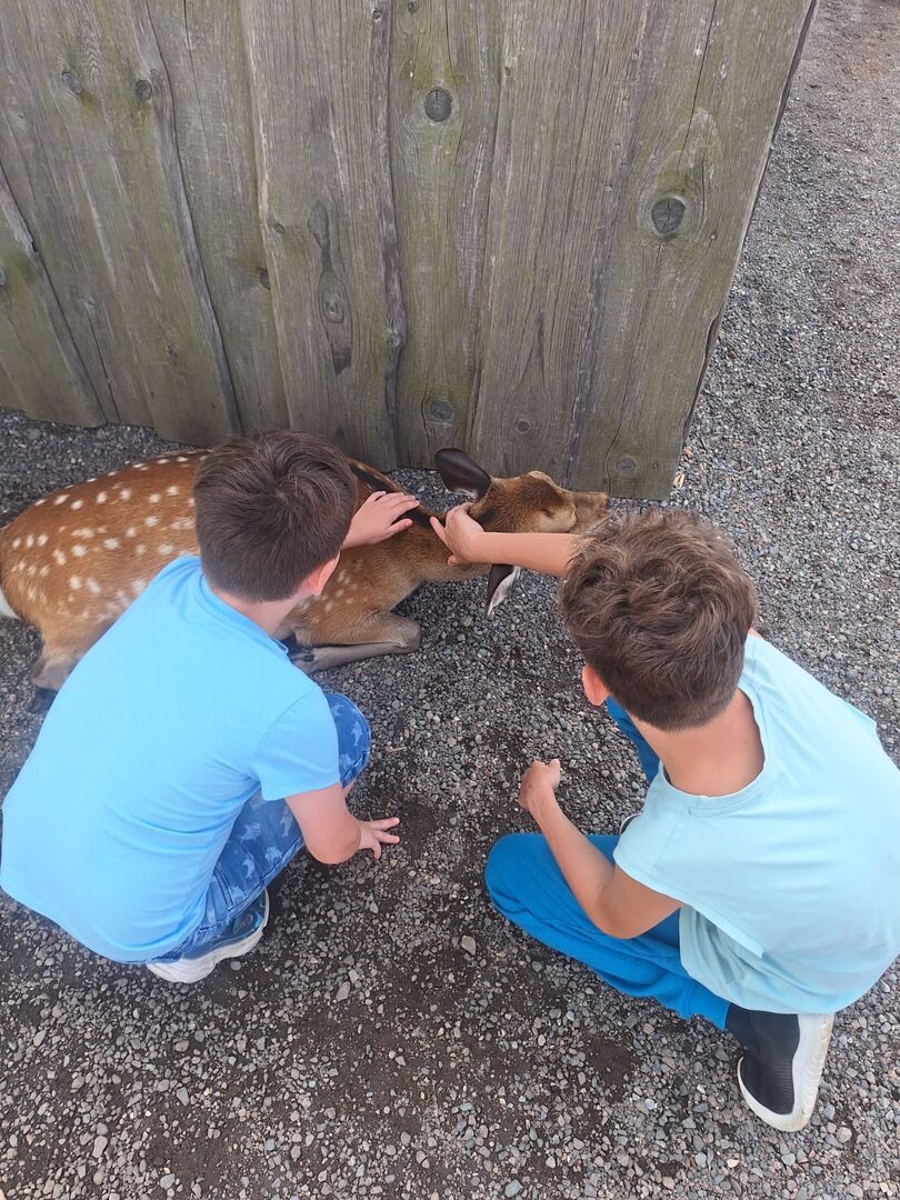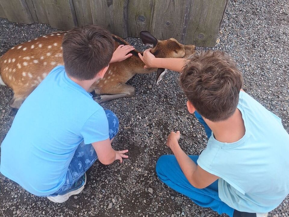 Kettenkarusell- und Achterbahn-Fahren gefiel den Jungs genauso wie die vorsichtige Begegnung mit den Rehen im Streichelzoo.