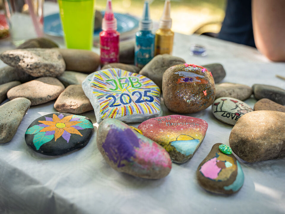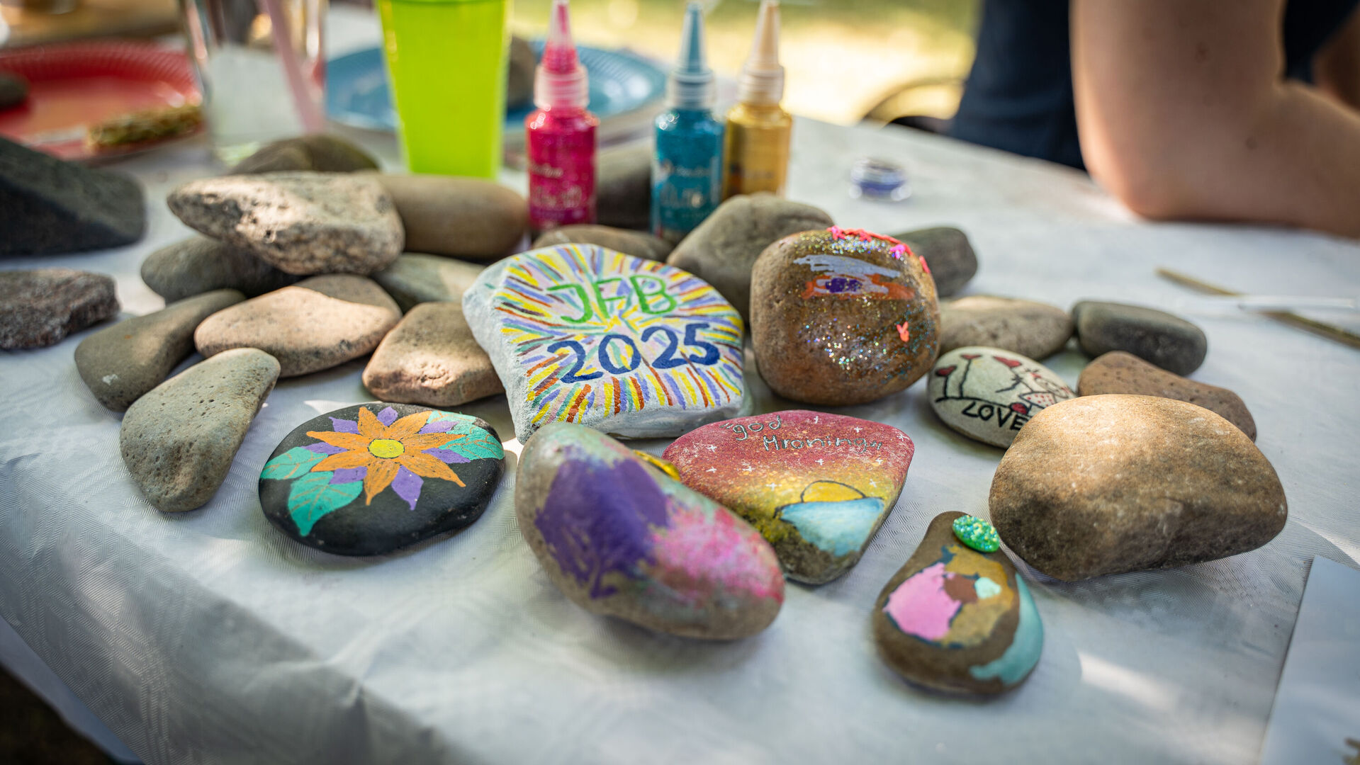 Für die Kinder gab es zahlreiche kreative Angebote. Mit Begeisterung und Zunge zwischen den Lippen wurden z. B. graue Steine in wahre Kunstwerke verwandelt.