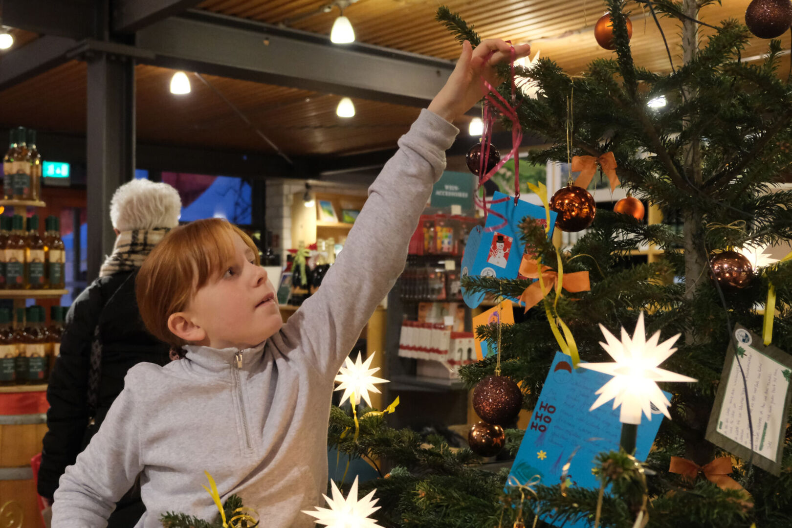 Die zehnjährige Angelie wünscht sich einen Sternenhimmel über ihrem Bett. Deshalb hat sie auf ihren Wunschzettel geschrieben: „Ich wünsche mir ein Stern-LED-Nachtlicht“ und den Zettel gut sichtbar an den großen Wunschbaum gehängt, der seit heute im Gutsmarkt von Schloss Wackerbarth steht. Bereits zum zehnten Mal erfüllt Wackerbarth mit tatkräftiger Hilfe seiner Gäste kleine Kinderwünsche.