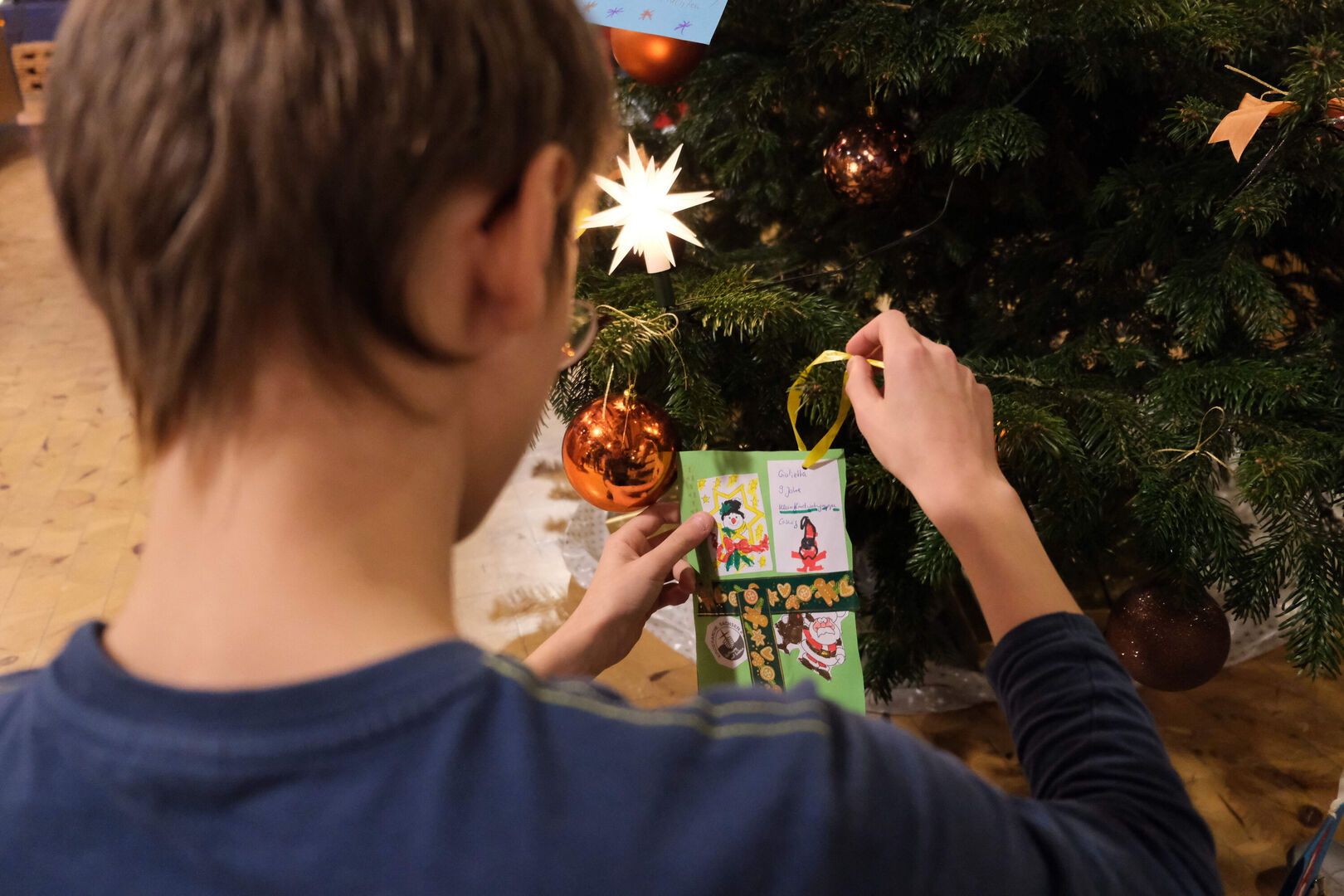 Insgesamt 42 Wunschzettel haben Angelie, Maria und Diego an den Baum gehängt, von Kindern und Jugendlichen aus unseren vier Radebeuler Wohngruppen, der Kleinkindgruppe Coswig, dem Trainingswohnen Dresden und der Integrativen Familienbegleitung Radebeul. Die Wünsche im Wert von jeweils maximal 25 Euro sind so unterschiedlich wie die jungen Menschen selbst – vom roten Spielzeugauto über Aquarellfarbe, ein Sammelkarten-Album, Rucksack oder Sternenhimmel-Projektor bis zur Kuscheldecke oder Flöte.