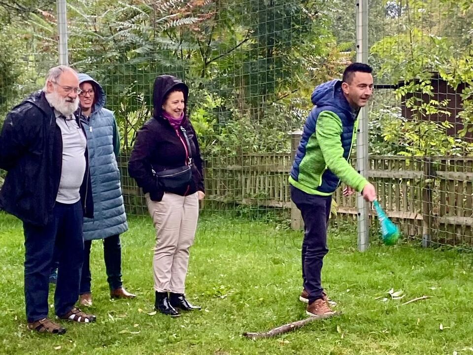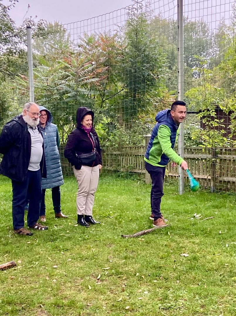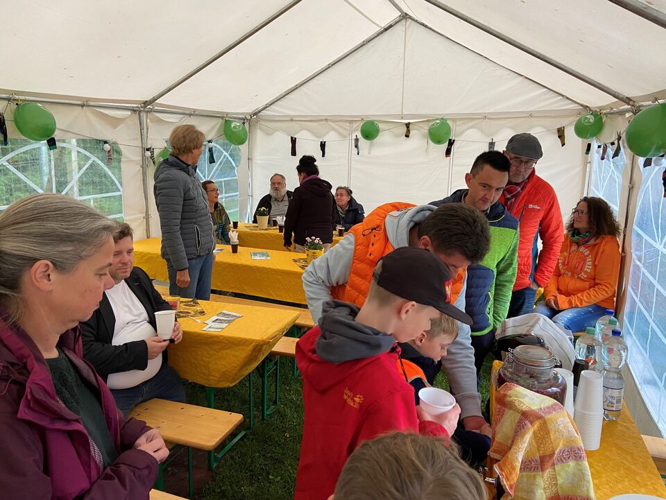 Um alle Gäste in Bewegung zu bringen, musste jeder sein Können im Sockenweitwurf zeigen. Trotz des Regens trauten sich alle aus dem Zelt und hatten sichtlich Spaß. Danach standen zwei Jungs als professionelle Fremdenführer für eine Hausführung zur Verfügung. Besonderes Augenmerk wurde dabei auf die erst kürzlich renovierte Garderobe gelegt.