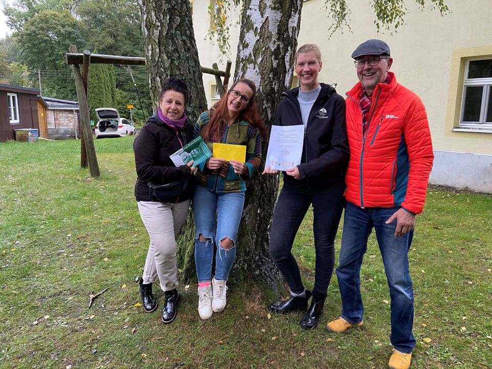 Nachdem unsere Gäste die strenge Einlasskontrolle der Sockenpolizei überstanden hatten oder noch schnell untereinander die Socken tauschten, konnte es schließlich losgehen. Zunächst begrüßte und eröffnete Einrichtungsleiterin Julia Mauersberger offiziell den Freundestag. Und präsentierte ein Lied speziell auf die WG Niederbobritzsch geschneidert. Da hieß es zum Beispiel: „Freundschaft unser kleines Reich / Lachen zusammen durch die Zeit / Kekskrümel auf dem Boden liegen / Weil wir diesen Ort so lieben.“ Und im Refrain: „Wir sind die Helden dieser Zeit / Gemeinsam stark in bunter Einheit / Unsere Hütte ist jung und wild / Ein Ort wo jeder etwas zählt.“